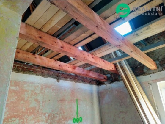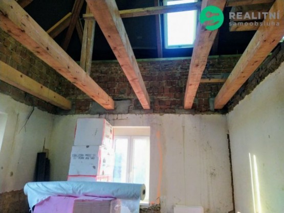 Dům je určený k...e kompletní rekonstrukci. Započata výměna trámů a střešní krytiny. Nová střešní okna (trojsklo). Nový komín, včetně vyvložkování.