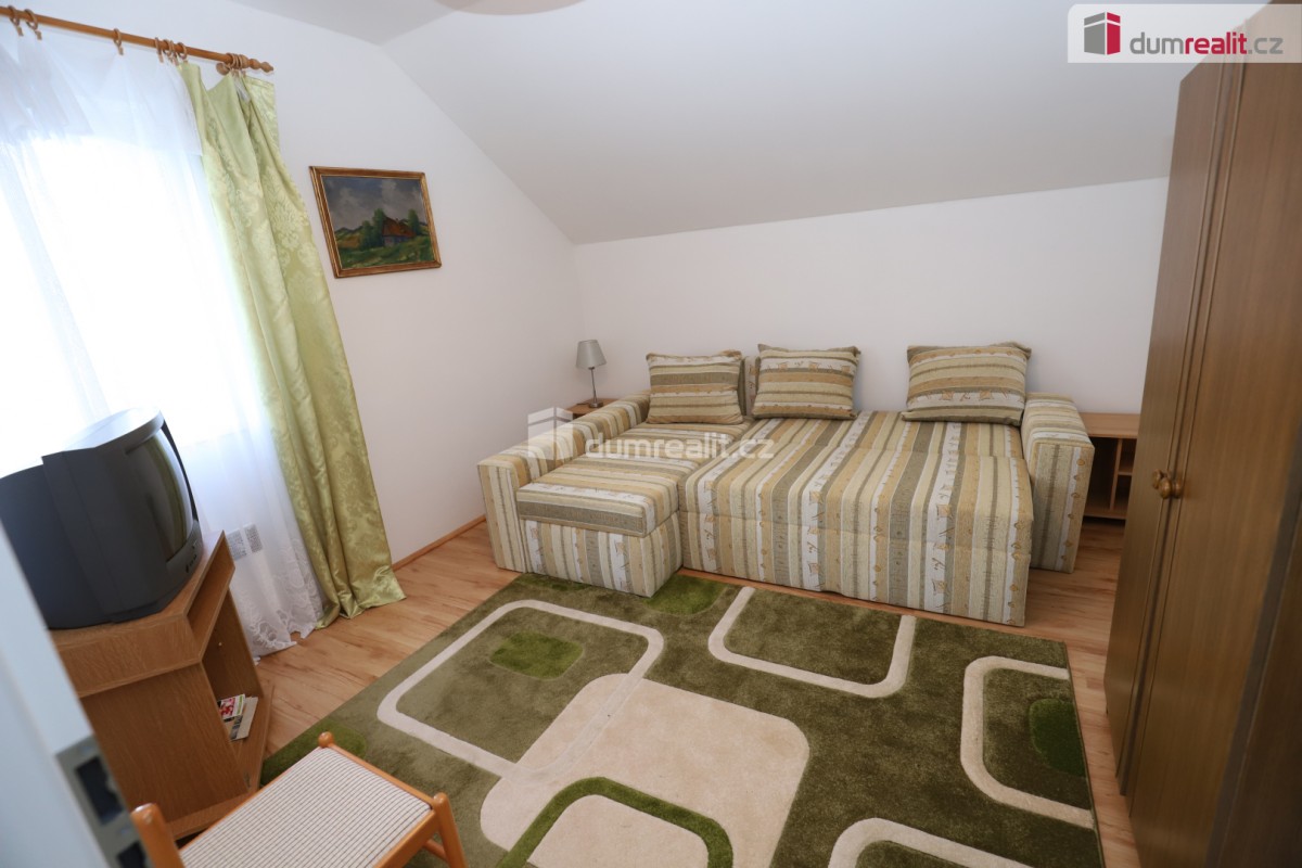 Dumrealit. cz Vám nabízí koupi moc hezkého, před 12ti lety dokončeného, rodinného domu typu v klidné a příjemné lokalitě Rájov 7 km od Mariánských Lázní. Budovu obklopuje pozemek s dokončeným plotem, upravenou zahradou a ...příjezdovou branou o celkové rozloze 1122 m² z čehož 113 m² tvoří zastavěná plocha. Řádně zkolaudovaný a dokončený dům nabízí dispozici 6+1 na ploše 200 m² a je napojen na inženýrské sítě včetně kanalizace a elektřiny. Vytápění zajišťuje tepelné čerpadlo vzduch - vzduch, v obývacím pokoji jsou krbová kamna, dále jako alternativní zdroj jsou zde přímotopy. Rozložení místností: velkorysý obývací pokoj s jídelním koutem a se zimní zahradou místo předsíně odkud je přístupná terasa, kuchyně, chodba, koupelna s vanou, toaleta, technická místnost, garáž, zadní chodba s výstupem na zahradu (další vchod do domu). V patře je celkem pět ložnic, úložná komora, balkon, další koupelna se sprchou, toaleta a úložná komora. Na chodbě je přístup na půdu, která skýtá spoustu úložného prostoru. Na podlahách domu je v přízemí dlažba, v prvním patře plovoucí podlaha. Stropy domu jsou je zatepleny. Střešní krytina je plechová. Odpad je do kanalizace. Parkování je možné na pozemku před garáží pro 2 automobily, dále je samozřejmě místo v garáži. Obec Rájov se nachází v bezprostřední blízkosti Mariánských Lázní, nedaleko obce Zádub - Závišín, kde je vyhledávané golfové hřiště. Za domem je krásná cyklotrasa vedoucí přes Nimrod, Prameny, Polom, Kladskou a dále do Kynžvartu. V Mariánských Lázních je veškerá občanská vybavenost včetně úřadů, bank, restaurací, obchodů, jsou zde supermarkety LIDL, PENNY, TESCO, Kaufland, BILLA, DM, Planeo elektro, JYSK, super ZOO, TAKKO, KIK, Deichmann. Mariánské Lázně jsou úžasné místo pro život i odpočinek, jsou prošpikované sítí turistických, cyklistických a běžkařských tras. Sportovcům je k dispozici plavecký bazén, sportovní areál Viktorka, plochá dráha, zimní stadion pro bruslaře, lyžařská sjezdovka s lanovkou, jezdecká škola, tenisové kurty, v létě je v provozu koupaliště Lido s písečnou pláží. Úžasné městské parky nabízí krásná zákoutí: Kolonádu se zpívající fontánou a přilehlý labutí park, Ferdinandův pramen, Lesní pramen, Rudolfův pramen, Medvědí pramen, Geologický park, obůrku Hvozd s daňky a jeleny. Mariánské Lázně se roku 2021 dostaly na seznam světového kulturního dědictví UNESCO, skýtají klid lázeňského města se zdravou vodou a čistým ovzduším. Mariánské Lázně se nacházejí v blízkosti německých hranic, tedy je vhodné pro ty, kteří tam hledají pracovní uplatnění. Cena zahrnuje provizi RK a právní servis. V případě potřeby Vám rádi doporučíme naše prověřené finanční specialisty. Ev. číslo: 653289. Energetický štítek: G (30 kWh/m2/rok).