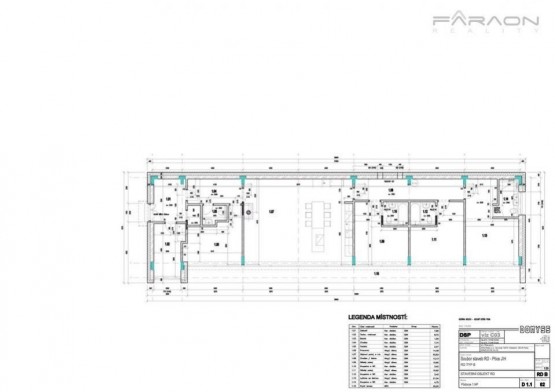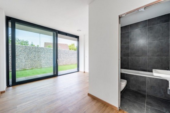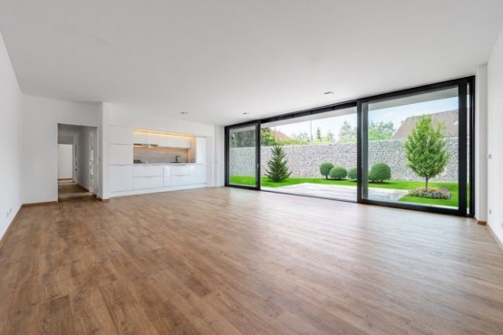 Jednopodlažní praktické uspořádání zahrnuje otevřený koncept (50m2) obývacího pokoje s přípravou na kuchyň, jídelním prostorem a s přímým vstupem na zahradní terasu a následně do zahrady, dále hlavní ložnici se šatnou a en - suite koupelnou, další 2 ložnice s vlastními koupelnami, samostatnou toaletou pro hosty zvlášť, pracovnu, technickou místnost, vstupní hala - předsíň.