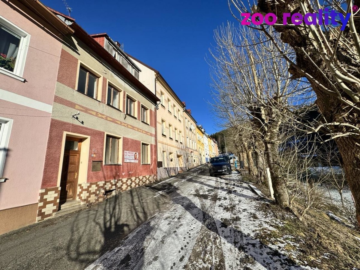 Nabízíme k prodeji podsklepený rodinný dům na klidné adrese lázeňského města Jáchymov v okrese Karlovy Vary. V tomto objektu najdeme vstupní předsíň, pokoj s kuchyňským koutem, koupelnu a další pokoj v 1. NP (první nadzemn...í patro). Ve 2. NP (druhé nadzemní patro) jsou tři místnosti a druhá koupelna. Půdní prostor skýtá další možnost dobudování obytných ploch. Dům lze rozdělit na 3 apartmány, vhodné k pronájmu. Zastavěná plocha činí 99m² a zahrada disponuje 269 m², což poskytuje dostatek prostoru pro venkovní aktivity. Nemovitost je napojena na kanalizaci a vytápění zajištěno plynovým kotlem, ohřev vody elektrickým bojlerem.