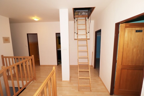 2. NP (druhé nadzemní patro): hala (17, 0 m2), pokoj (22, 5 m2), pokoj (13, 0 m2), pokoj (13, 0 m2), pokoj (11, 0 m2), šatna (6, 5 m2), koupelna (4, 5 m2), sociální zařízení WC (1, 5 m2), úložný prostor ve štítě