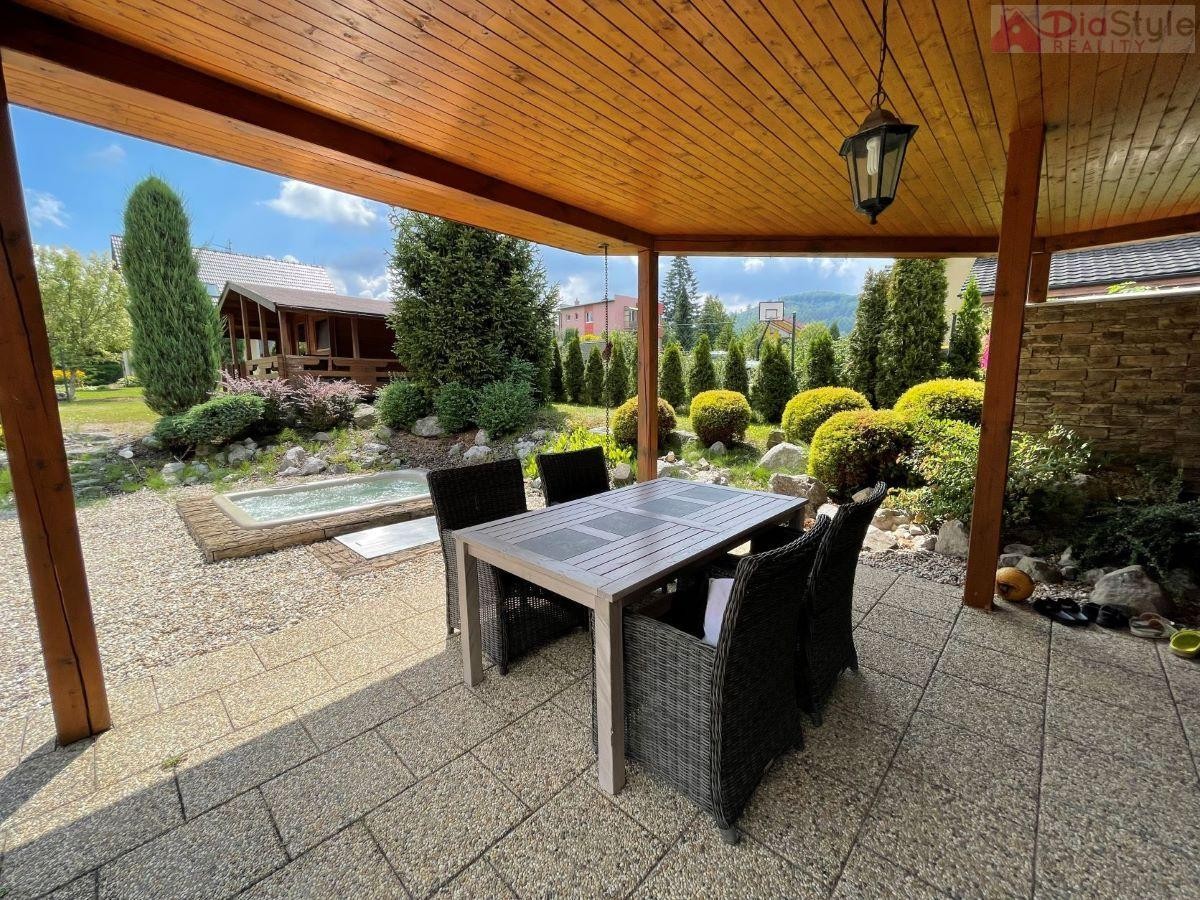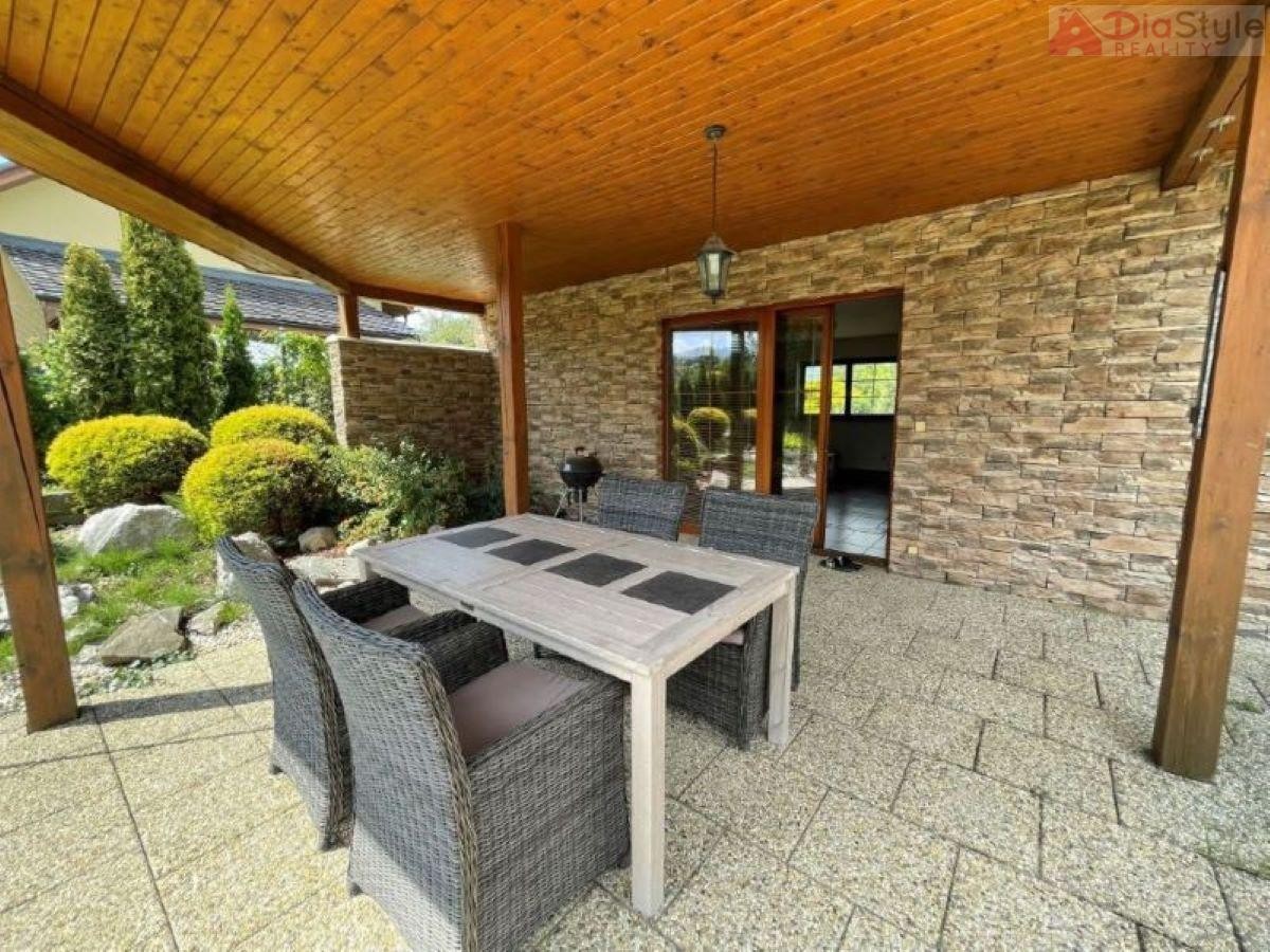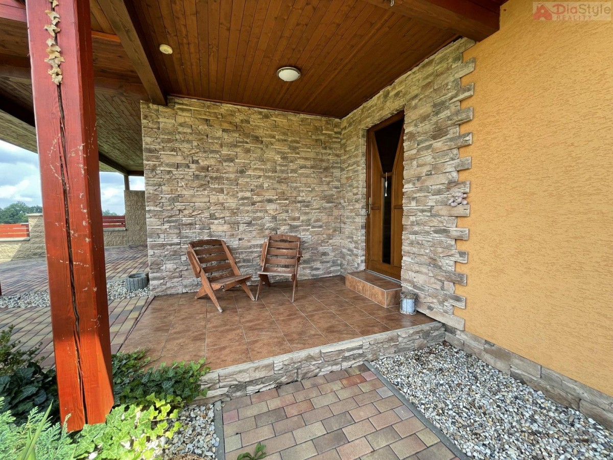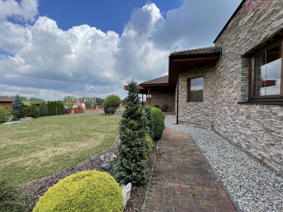 Nabízíme k prodeji nadčasový moderní rodinný dům typu bungalov v exkluzivní lokalitě města Kopřivnice, část Paseky. K domu náleží slunná krásná prostorná zahrada, která Vás nadchne svých propracováním, jsou na ni vzrostlé... okrasné stromy a má rozlohu 1 189 m2. Zahrada navazuje na velkou terasou u domu, na kterou je vstup z obývacího pokoje. Na zahradě je k dispozici také dřevěný domek k uložení cyklo nebo zahradního nářadí apod. Dům je příjemně dispozičně situován: 1. NP (první nadzemní patro): veranda, kuchyně s jídelním koutem a krbem, spíž, obývací pokoj se vstupem na zahradu, 3 krát pokoj, koupelna s sociální zařízení WC, technická místnost, prostorná garáž se sekčními vraty, přístřešek pro auto. Součástí domu je již zmíněná zastřešená terasa s vířivkou. Dům je zděný, zateplený, zastřešený s krytinou pálenou taškovou. Základy jsou betonové s izolací proti zemní vlhosti, vnitřní příčky jsou zděné a SDK, okna plastová, podlahy plovoucí nebo keramická dlažba. Vytápění je zajištěno tepelným čerpadlem a nebo krbem. Dům je napojen na vodovod k dispozici také studna a má vlastní ČOV (osobní vlastnictví). Kolaudace domu byla v r. 2008. Jedná se o rezideční oblast, je zde velice klidné bydlení, dobře dostupné i v zimě po obecní komunikaci, se solidními sousedy. Parkování na pozemku. V okolí je hodně zeleně a do lesa je to cca 10 minut pěšky. Cyklostezky, procházky, v zimě trasy na běžky, Muzeum Tatra, Štramberská trúba, na Masarykově náměstí jste za cca 28 minut pěšky. Školka a základní škola je od domu do 4 minut jízdy autem. Skvělá dostupnost je i do obchodních domů a restaurací, nebo na vlakové i autobusové spojení, autobusová zastávka je 5 minut od domu. Dům je k dispozici ihned. Hledáme vážné zájemce, pro více informací a možnost prohlídky kontaktujte makléře. Majitelé zajišťují prodej výhradně prostřednictvím naší kanceláře.