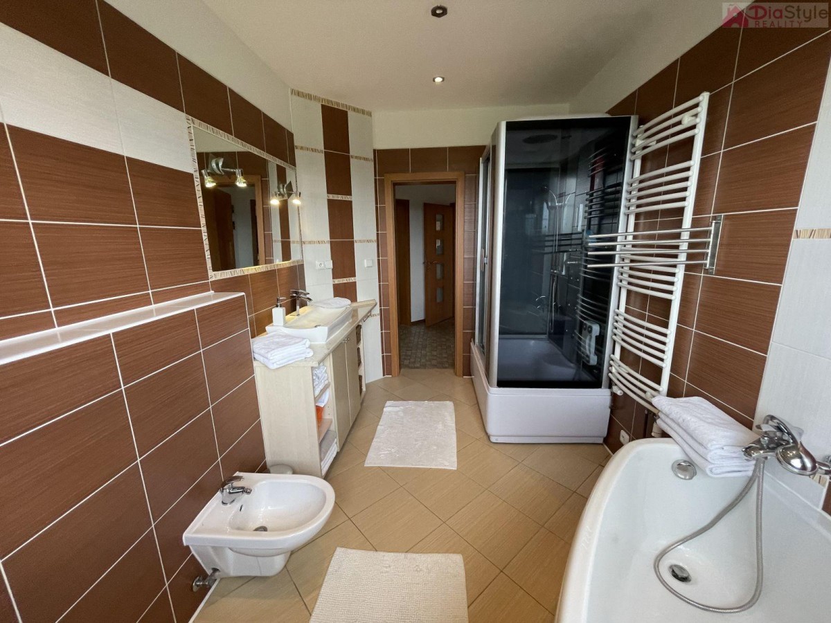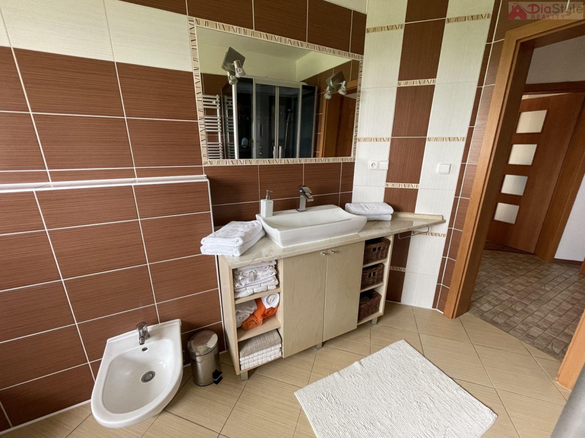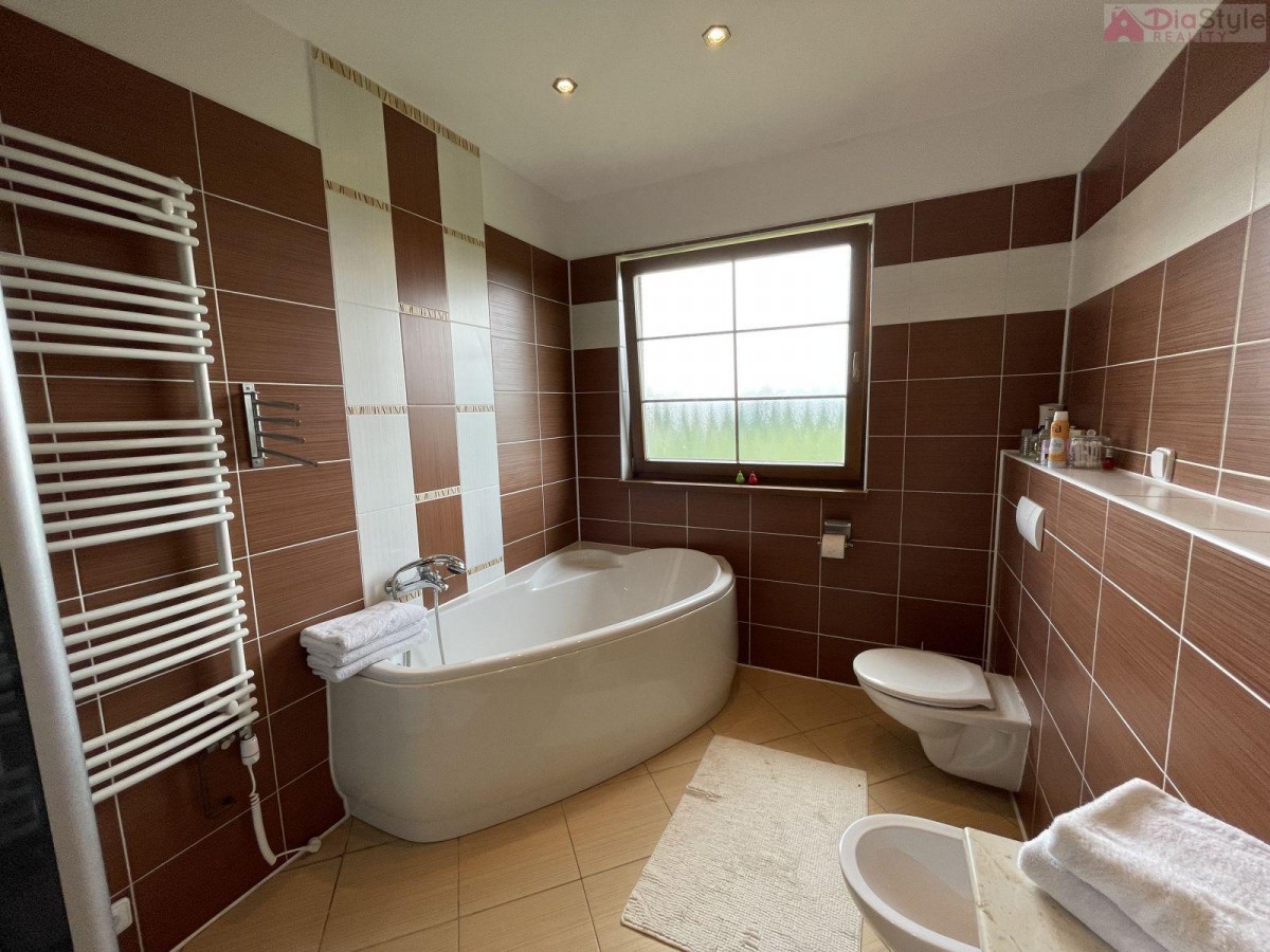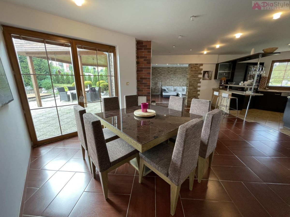Nabízíme k prodeji nadčasový moderní rodinný dům typu bungalov v exkluzivní lokalitě města Kopřivnice, část Paseky. K domu náleží slunná krásná prostorná zahrada, která Vás nadchne svých propracováním, jsou na ni vzrostlé... okrasné stromy a má rozlohu 1 189 m2. Zahrada navazuje na velkou terasou u domu, na kterou je vstup z obývacího pokoje. Na zahradě je k dispozici také dřevěný domek k uložení cyklo nebo zahradního nářadí apod. Dům je příjemně dispozičně situován: 1. NP (první nadzemní patro): veranda, kuchyně s jídelním koutem a krbem, spíž, obývací pokoj se vstupem na zahradu, 3 krát pokoj, koupelna s sociální zařízení WC, technická místnost, prostorná garáž se sekčními vraty, přístřešek pro auto. Součástí domu je již zmíněná zastřešená terasa s vířivkou. Dům je zděný, zateplený, zastřešený s krytinou pálenou taškovou. Základy jsou betonové s izolací proti zemní vlhosti, vnitřní příčky jsou zděné a SDK, okna plastová, podlahy plovoucí nebo keramická dlažba. Vytápění je zajištěno tepelným čerpadlem a nebo krbem. Dům je napojen na vodovod k dispozici také studna a má vlastní ČOV (osobní vlastnictví). Kolaudace domu byla v r. 2008. Jedná se o rezideční oblast, je zde velice klidné bydlení, dobře dostupné i v zimě po obecní komunikaci, se solidními sousedy. Parkování na pozemku. V okolí je hodně zeleně a do lesa je to cca 10 minut pěšky. Cyklostezky, procházky, v zimě trasy na běžky, Muzeum Tatra, Štramberská trúba, na Masarykově náměstí jste za cca 28 minut pěšky. Školka a základní škola je od domu do 4 minut jízdy autem. Skvělá dostupnost je i do obchodních domů a restaurací, nebo na vlakové i autobusové spojení, autobusová zastávka je 5 minut od domu. Dům je k dispozici ihned. Hledáme vážné zájemce, pro více informací a možnost prohlídky kontaktujte makléře. Majitelé zajišťují prodej výhradně prostřednictvím naší kanceláře.