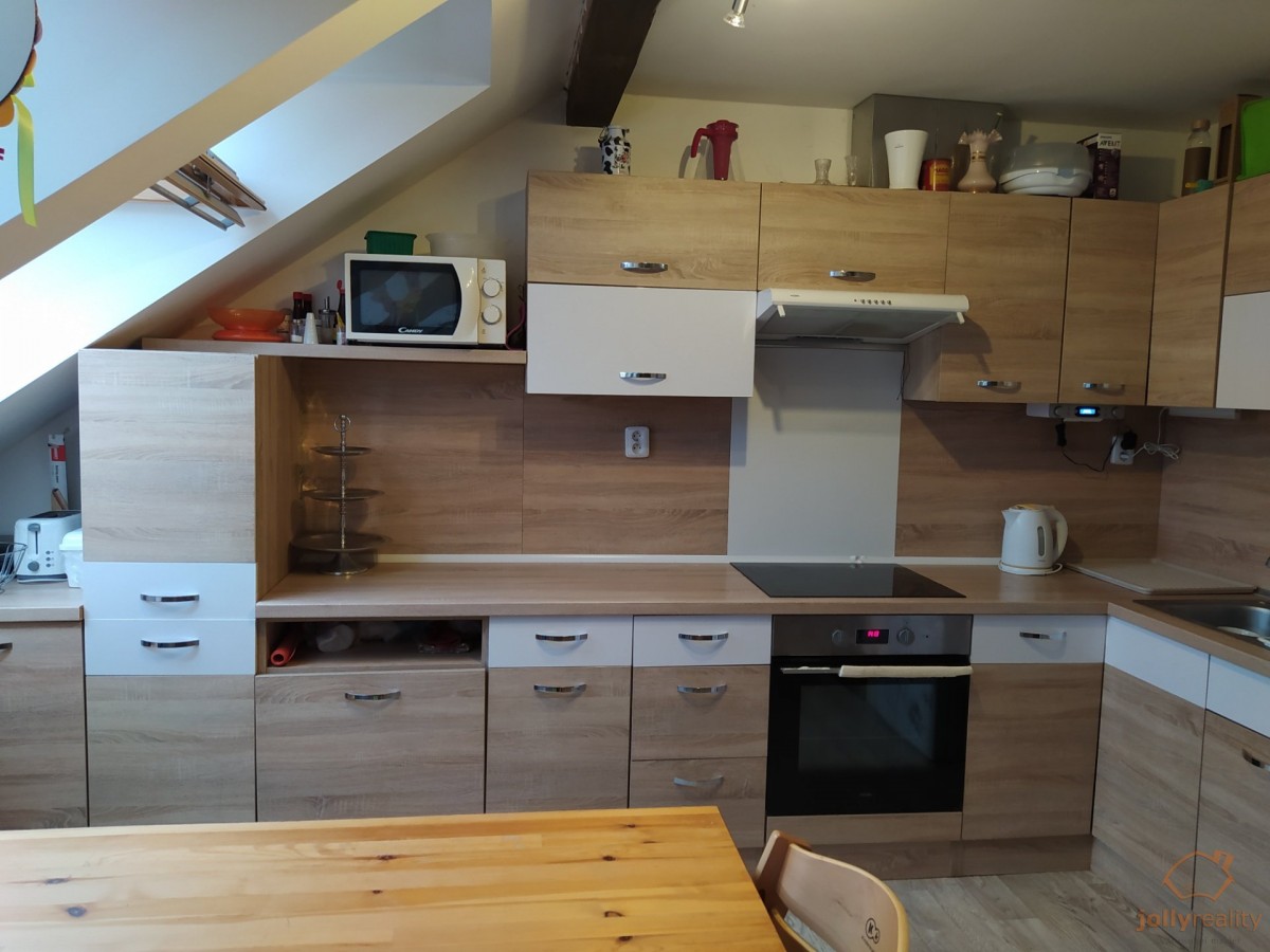 3. NP (třetí nadzemní patro) - podkrovní byt 2 + KK, 42 m2 s dalším obytným půdním prostorem cca 20 m2 , obývací pokoj s kuchyňským koutem 25 m2 , předsíň, koupelna s vanou a sociální zařízení WC 4 m2 , ložnice 14 m2 s vestavěnou skříní. Z obytného pokoje je vstup do půdního prostoru po mlynářském schodišti.