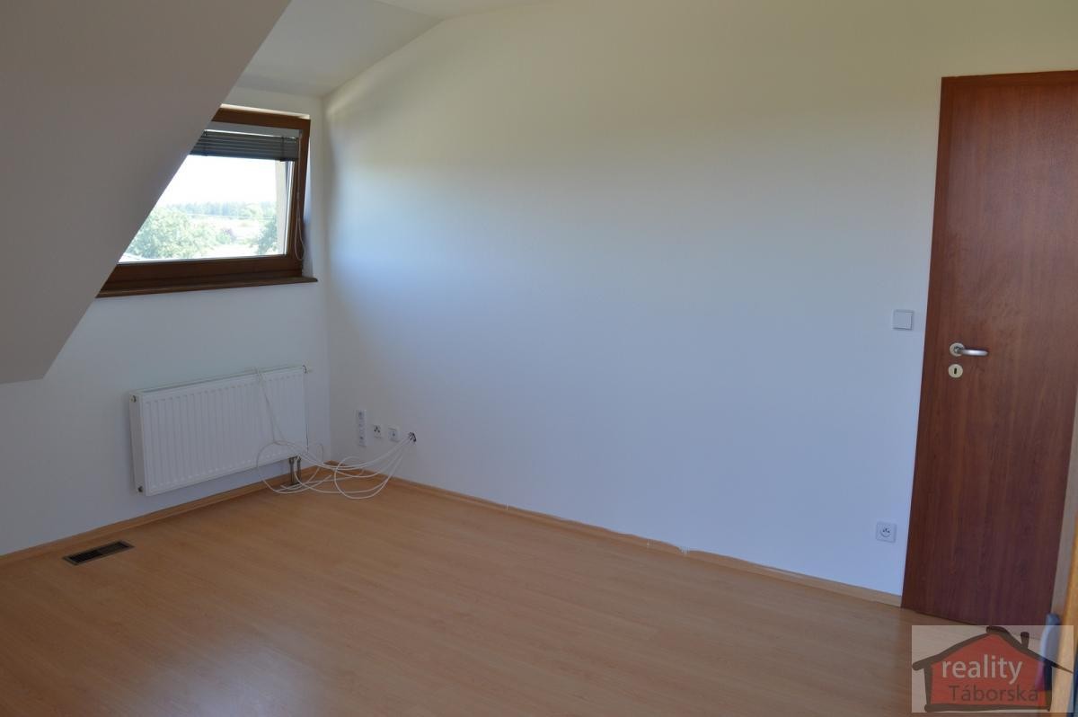 V patře je chodba (8, 32m2), 3 krát ložnice (11, 78m2, 15, 94m2 a 15, 95m2), balkón (5, 67m2), šatna (2, 03m2), prostorná koupelna s vanou a sociální zařízení WC (7, 30m2).