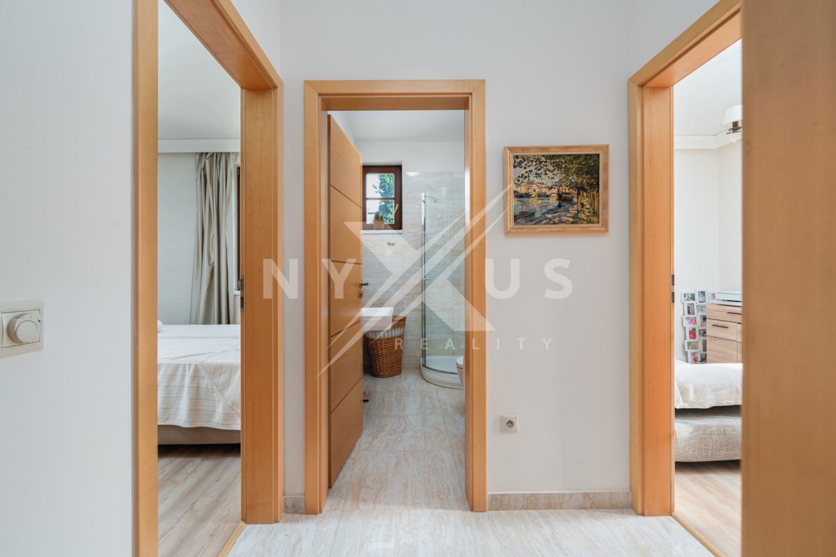 Plynové vytápění je kombinováno s elektrickými vyhřívanými podlahami a krbem. Dřevěná okna, dřevěné plovoucí podlahy, v koupelnách pak na podlahách dlažba. Klid bydlení zajistí zabezpečovací systém Paradox.