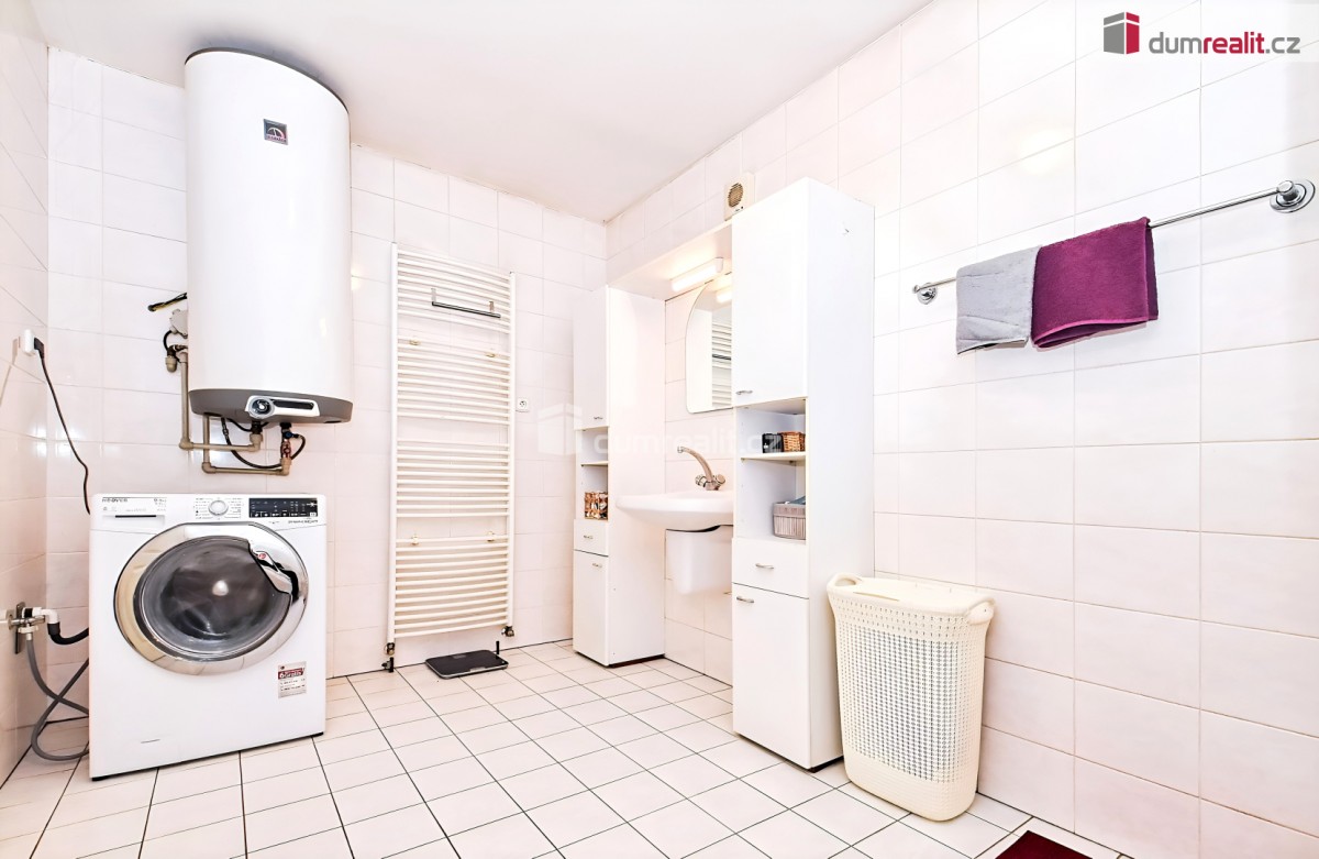 Bezproblémové parkování pro 4 auta, voda - veřejný vodovod, odpad - septik, střecha je vhodná pro FVE, pod domem je sklep (12m²).