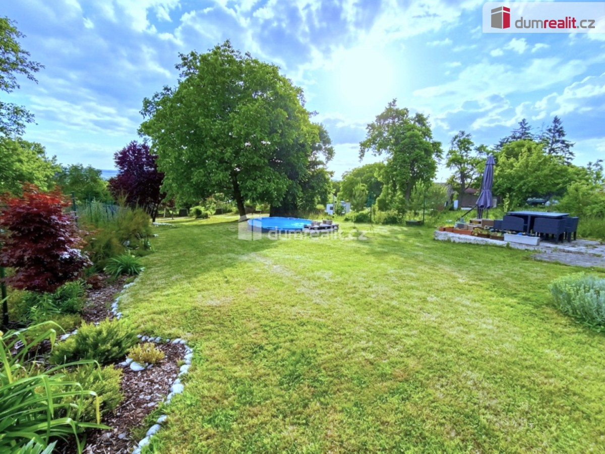 Pěkná a dostatečně veliká (1. 157m²) zahrada s kruhovým bazénem je ideální pro aktivní vyžití ale i relax a dobití energie ve stínu vzrostlých stromů, z části ovocných.