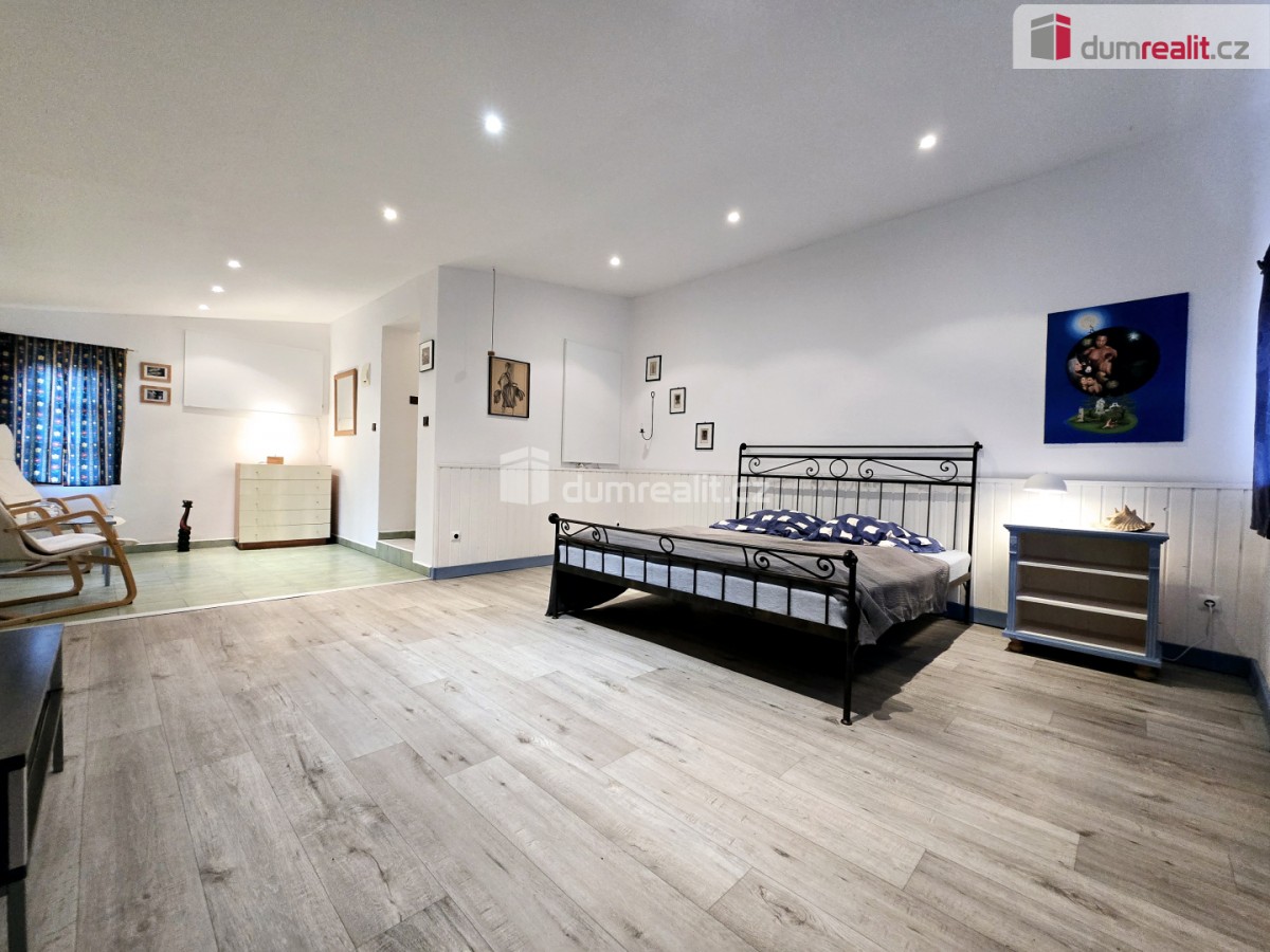 V přízemí se také nachází pracovna, a velkorysý pokoj pro hosty. Z domu vede přímý vstup do garáže. Pokud ke svému životu potřebujete opravdu hodně místa, pak Vás jistě potěší další velkoprostorová místnost. Ta v současné době slouží, jako odpočinková zóna, kde najdeme vířivku, krb s posezením a malou posilovnu. Dovedu si představit, že nový majitel zde bude moi vytvořit zázemí pro domácí podnikání, a nebo ponechat relax zónu, která jistě přinese také spoustu radosti. Odsud nás poschodí dovede do suterénu. Ani zde se nebudete nudit. Je zde vybudovaný bar s posezením, sauna, sprcha a toaleta. Mj. je zde i technické zázemí domu.