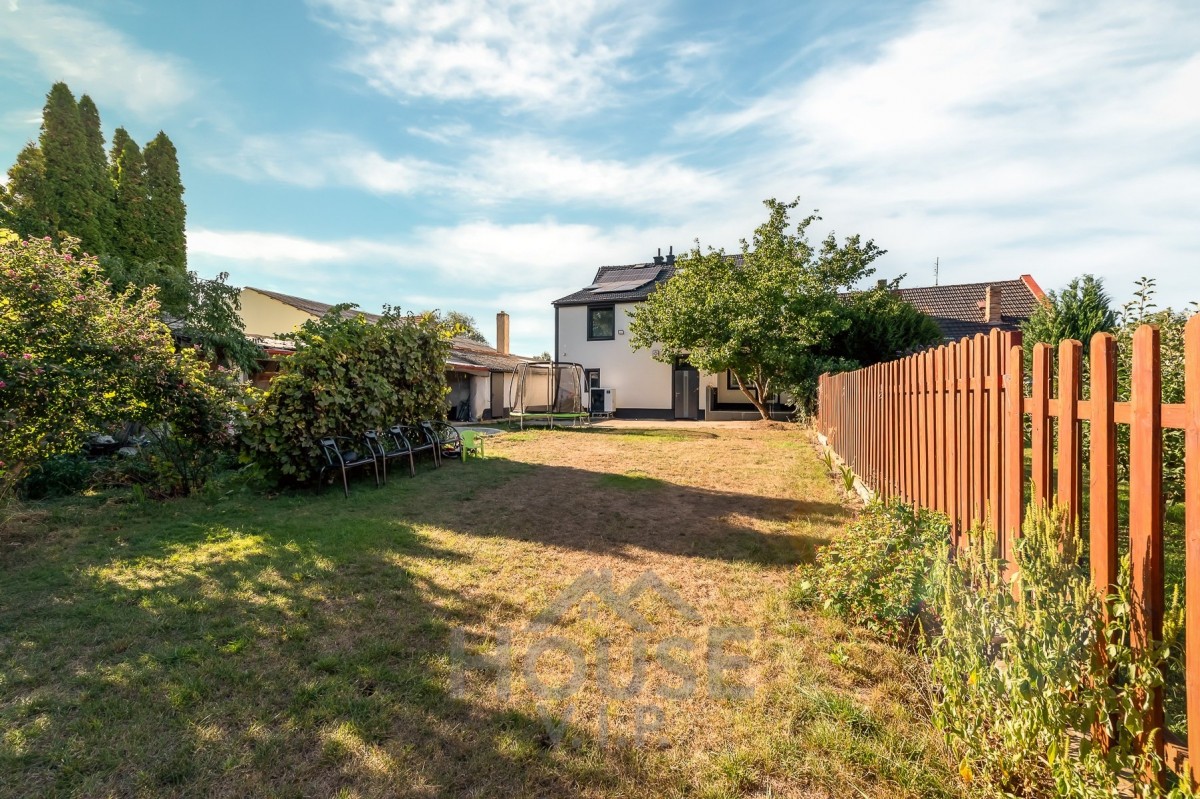 K domu náleží také prostorná zahrada vhodná pro rodinný odpočinek, zahradničení i relaxaci a samostatná garáž.