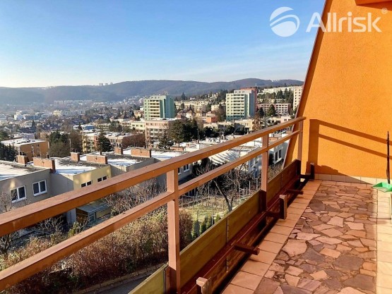 Exkluzivně nabízíme prodej rodinného domu na výjimečném místě městské části Žabovřesky na ulici Terasová pod Palackého vrchem. Jedná se třípodlažní řadový dům ze 70. let, který poskytuje dostatek prostor pro rodinné bydlen...í, bydlení spojené s podnikáním, případně soužití dvou generací. Celková užitná plocha domu je cca 220 m2, obytná podlahová plocha cca 140 m2. 1. NP (první nadzemní patro) je spíše technické - garáž (vrata s dálkovým ovládáním), kotelna, prádelna, samostatné sociální zařízení WC, sprchový kout, dílna a sklep. Za zádveřím je prostorná hala s vestavěnými skříněmi a dřevěným schodištěm, které je středem celého domu. Ve 2. NP (druhé nadzemní patro) je velká kuchyně s jídelnou, ze které je vstup na zahradu, na druhou stranu je prosvětlený obývací pokoj s krbem a velkou terasou, která vás ohromí panoramatickým výhledem na město a okolí od východu k západu. V tomto podlaží je nová koupelna se sprchovým koutem a sociální zařízení WC. Ve 2. NP (druhé nadzemní patro) se nachází 3 samostatné pokoje, koupelna s vanou a sociální zařízení WC zvlášť. Ten největší pokoj je orientován do zahrady, dva menší do ulice a jsou propojeny další vyhlídkovou terasou. Dům je průběžně modernizován - v roce 2007 byly provedeny nové rozvody topení, vyměněny radiátory a plynový kotel, okna jsou z roku 2003, kuchyně 2004, vchodové a garážové dveře byly vyměněny v roce 2014.