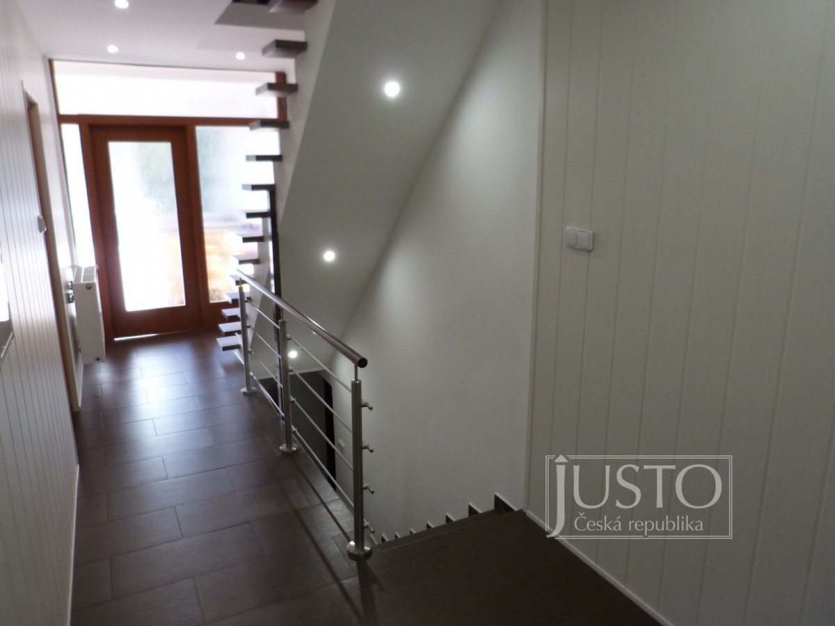 V suterénu domu je koupelna s rohovou vanou, sprchovým koutem a toaletou, sklep a zadní vchod do garáže. V 1. NP (první nadzemní patro) dvoupodlažního domu se nachází vstupní hala, plně vybavena kuchyň spojená s velkým obývacím pokojem, komora, místnost s jídelním stolem a dva pokoje z nichž jeden má vstup na zastřešenou terasu. V 2. NP (druhé nadzemní patro) domu jsou 4 pokoje, ložnice, 2 dětské pokoje a místnost která není dokončena, lze ji upravit na místnost se zimní zahradou a toaletou.