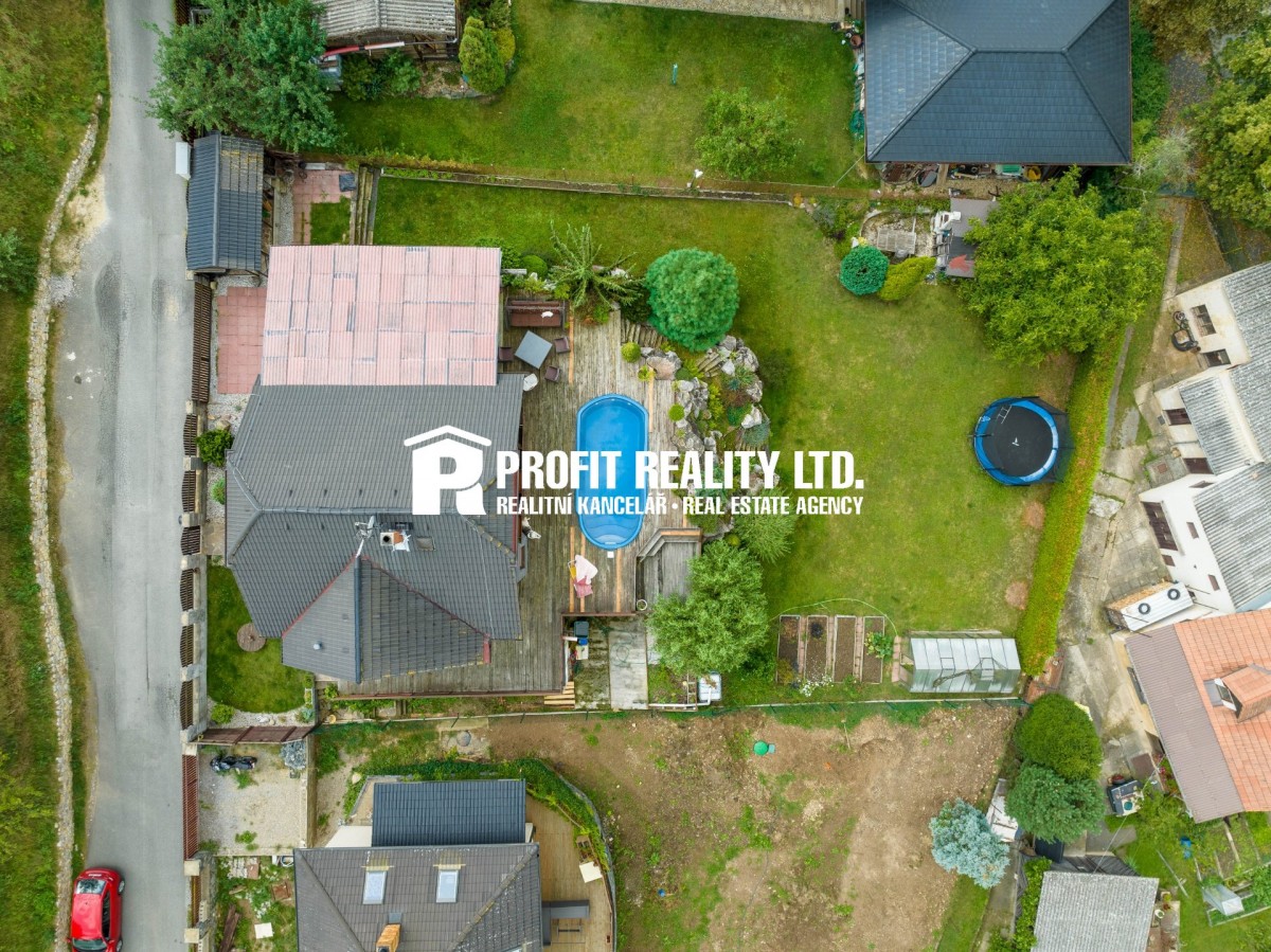 Nádherná terasovitá zahrada o výměře 864m2, kde si bezesporu všimnete kamenů dovezených z nedalekého lomu Čertovy schody, terasou s opět neodolatelným výhledem v ceně a bazénem, který věřím že neocení pouze děti.