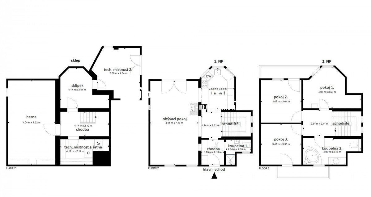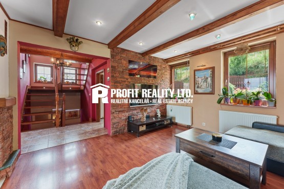 Dům je třípodlažní a dispozičně ...tle="4 pokoje + 1 kuchyň">4+1. Ve sklepě, najdete čtyři místnosti v podobě herny, relaxační místnosti , nechybí ani místnost technická se šatnou a velký sklad, kde se dá vymyslet cokoliv vám fantazie dovolí. Dále pokračujeme do 1. NP (první nadzemní patro) s koupelnou včetně záchodu a sprchového koutu, Kuchyň s neomrzitelným výhledem, dále obývací pokoj dost velký na to aby se vám tam vešel jídelní stůl i s pianem.