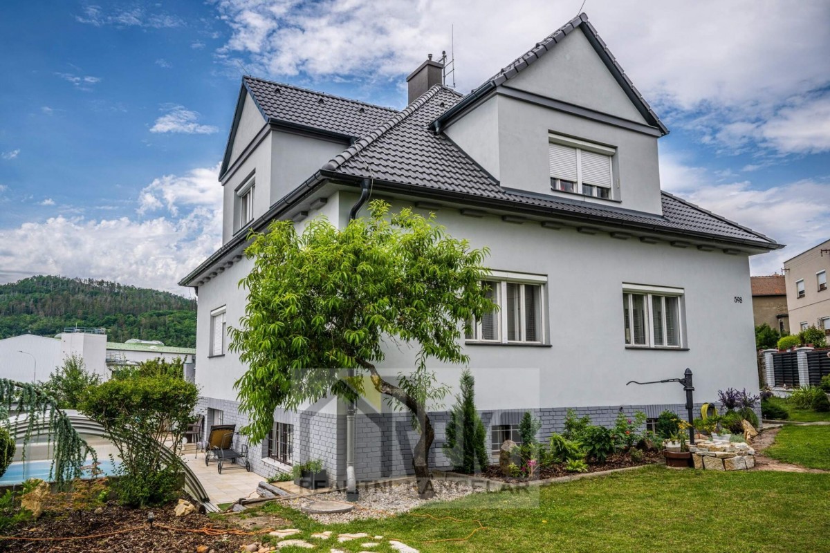 Nabízíme k prodeji rodinný dům v Berouně. Jedná se o rekonstruovaný dům se zahradou, na pozemku o výměře 785 m2 v klidné části Berouna - Závodí. Po vstupu do domu vás upoutá majitelky cit pro design. Z chod...by se vchází do haly, ze které je přístup do kuchyně s jídelnou, dále do obývacího pokoje s krbem, ložnice má samostatný vchod a taktéž i koupelna se sprchovým koutem a sociální zařízení WC. V 1. patře je zcela nová druhá koupelna s vanou, sociální zařízení WC zvlášť. Nachází se zde tři samostatné pokoje a dvě šatny. V suterénu domu je prádelna, sauna, technická místnost (plynový kotel, který zajišťuje vytápění domu a kotel na tuhá paliva), dílna a místnost, kterou lze využívat jako šatnu či kuchyňku, vzhledem k tomu, že z těchto prostor je přístup na zahradu s výměrou 497 m2, kde je umístěn krytý bazén se zahradním posezením a sklípek. K domu náleží dvě garáže, z nichž v jedné je ještě místnost s dalším krbem. Dům prošel revitalizací (nové plovoucí podlahy, předokenní žaluzie, střecha, fasáda, zateplení, plot). Pro milovníky golfu jde o velice pěknou lokalitu, neboť 1 km od domu se nachází golfový resort.