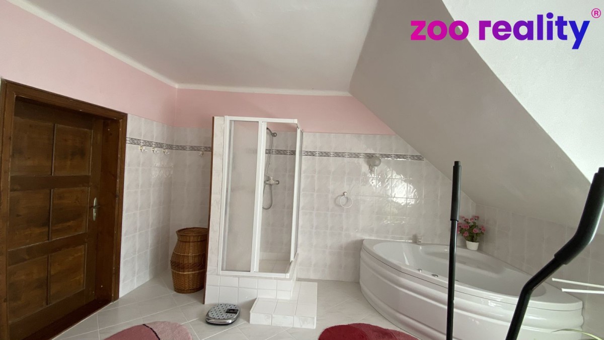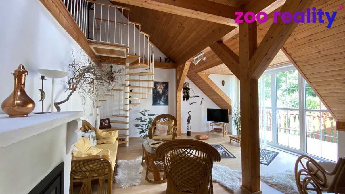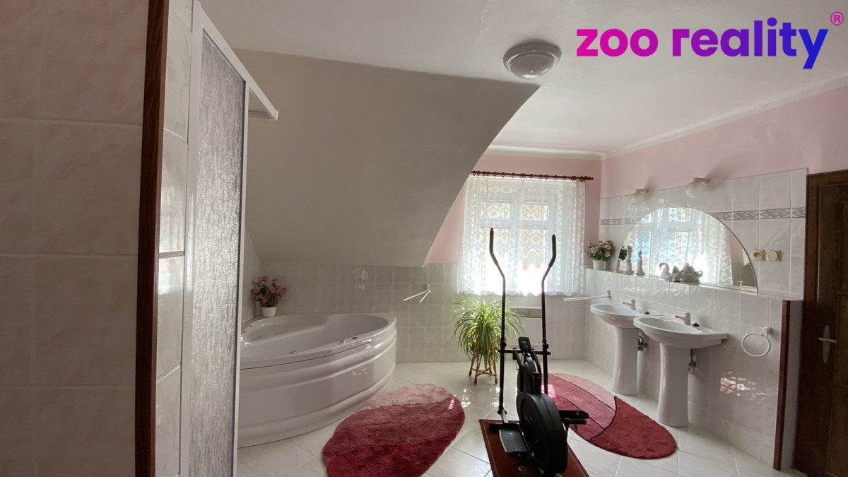 Nabízíme k prodeji samostatně stojící rodinný dům se zahradou o velikosti 439 m2 v klidné a žádané lokalitě města Kadaně. Dům se skládá z přízemí, kde se nachází obývací pokoj s elektrickým obezděným krbem a vera...ndou s výhledem na okrasnou zahradu, jídelny, malé koupelny se sprchovým koutem s sociální zařízení WC a kuchyně. Na chodbě je také elektrický obezděný krb. Po schodišti vcházíme do 1. patra, kde se nachází prostorný obývací pokoj s plynovým krbem a velkou terasou, po dřevěném točitém schodišti dojdeme do otevřeného podkroví, kde se nachází útulný koutek na odpočinek. Dále je zde velká koupelna s hydromasážní vanou, sprchovým koutem, dvěma umyvadly a sociální zařízení WC a odtud vcházíme do hlavní ložnice. K domu je z boku přistaven přístavek na dva osobní automobily. Dům je částečně podsklepen, ve sklepě jsou tři sklepy a koupelna s pračkou, vanou a sprchovým koutem. Sklep je suchý. Zahrada je udržovaná, okrasná, je zde kulatý vyhřívaný bazén, venkovní krb a zahradní sezení. Dům zůstane zařízen. Bližší info u makléře.