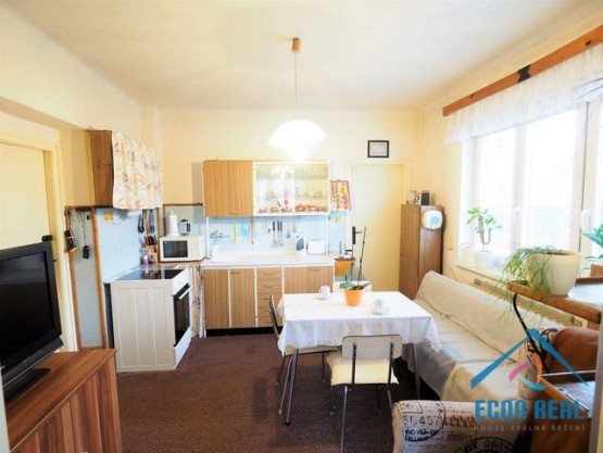 Hledáte v Praze nové místo k životu? Potřebujete víc prostoru? Máte rádi lokalitu Prahy 9, skvělou dostupnost a přitom přírodu na dosah? Exkluzivně Vám nabízíme prodej dvougeneračního, zčásti podsklepeného domu v klidné uli...ci uprostřed vilové zástavby v Praze 14 Kyjích. Dům je situován na rovinatém pozemku, který je zčásti užívaný jako zahrada s dvorkem a posezením a zčásti je zastavěn domem 85 m2 (jednou částí dvojdomu) prostornou samostatnou garáží 18 m2 a přístavbami 63 m2, které slouží jako dílny a kůlny. Nezastavěná plocha pozemku je 399 m2 . Dům byl zkolaudován v roce 1956. V každém podlaží se nachází jedna samostatná bytová jednotka (podružné měřiče). V přízemí se jedná o velice světlý byt 2+1, výměry 57 m2 + zádveří 9 m2, který je dispozičně řešen průchozí kuchyní do rekonstruované koupelny se sprchovým koutem a bojlerem a na druhou stranu do ložnice. Druhý pokoj je dostupný z velké předsíně. V hale se dále nachází samostatná toaleta (po rekonstrukci) a prostorná komora na potraviny a vchod do sklepa. Kuchyňská linka v původním stavu. V horním patře nalezneme byt 2+kk 65 m2, který se skládá z obývacího pokoje s kuchyňským koutem, ložnice a ještě malé ložničky. Koupelna s vanou, umyvadlem a bojlerem (v původním stavu) je dostupná z chodby, stejně jako zrekonstruovaná toaleta a opět potravinová komora. V patře též nalezneme velice příjemnou zimní zahradu s výhledem a další boční využitelný prostor půdy např. ke skladování, či rozšíření pokojů. Z horní chodby je žebříkem vstup na zateplenou půdu, která je ve středové části cca 2 m. Půda je pochozí. Úpravami, vyjma zateplení střechy stříkanou pěnou, neprošla. Samotný dům (část dvojdomu) je situován v pravé části pozemku a je velice dobře dostupný. Přístavby, které navazují na sousedovu zeď, by bylo možné přestavět či zdemolovat. Dům má vyměněná všechna okna za kvalitní plastová - třívrstvá se žaluziemi a sítěmi, bylo realizováno nové oplocení s novými vraty a rekonstruována spodní koupelna a toaleta, opravena a natřena střecha na přístavbě. Hlavní dům má střešní krytinu - alukryt. Dům je celý vytápěn elektrickým kotlem umístěným ve sklepě (30 m2) prostřednictvím litinových radiátorů. Elektrické topení lze kombinovat s topením na pevná paliva. Komín je plně funkční. Plynová přípojka je na pozemku, zavedení plynu a změna topné soustavy je realizovatelná. Celkové náklady na provoz ve stávajícím stavu jsou 3706 na jednotku (včetně TV a rozhlasu). Zastávka autobusu cca 2 minuty, centrum Černý most autem 10 minut, nejbližší zastávka metra 10 minut, na druhou stranu je 2. stanice Lidl a 3. stanice Kaufland. Soukromá školka v ulici pod domem ZŠ do 10ti minut. Velmi klidná lokalita s příjemným okolím i na procházky (Kyjský rybník, okolí Rokytky). Dům je tichý, ale skvěle dostupný. Dům má variabilní využití i pro komerční účely. Energetická třída G je uvedena dočasně, vzhledem k novele zákona č. 406/2000 Sb. o hosp. sen. Doporučujeme Vám prohlídku. Virtualni prohlídka zde: https: //www. nview. cz/vp/vp411/