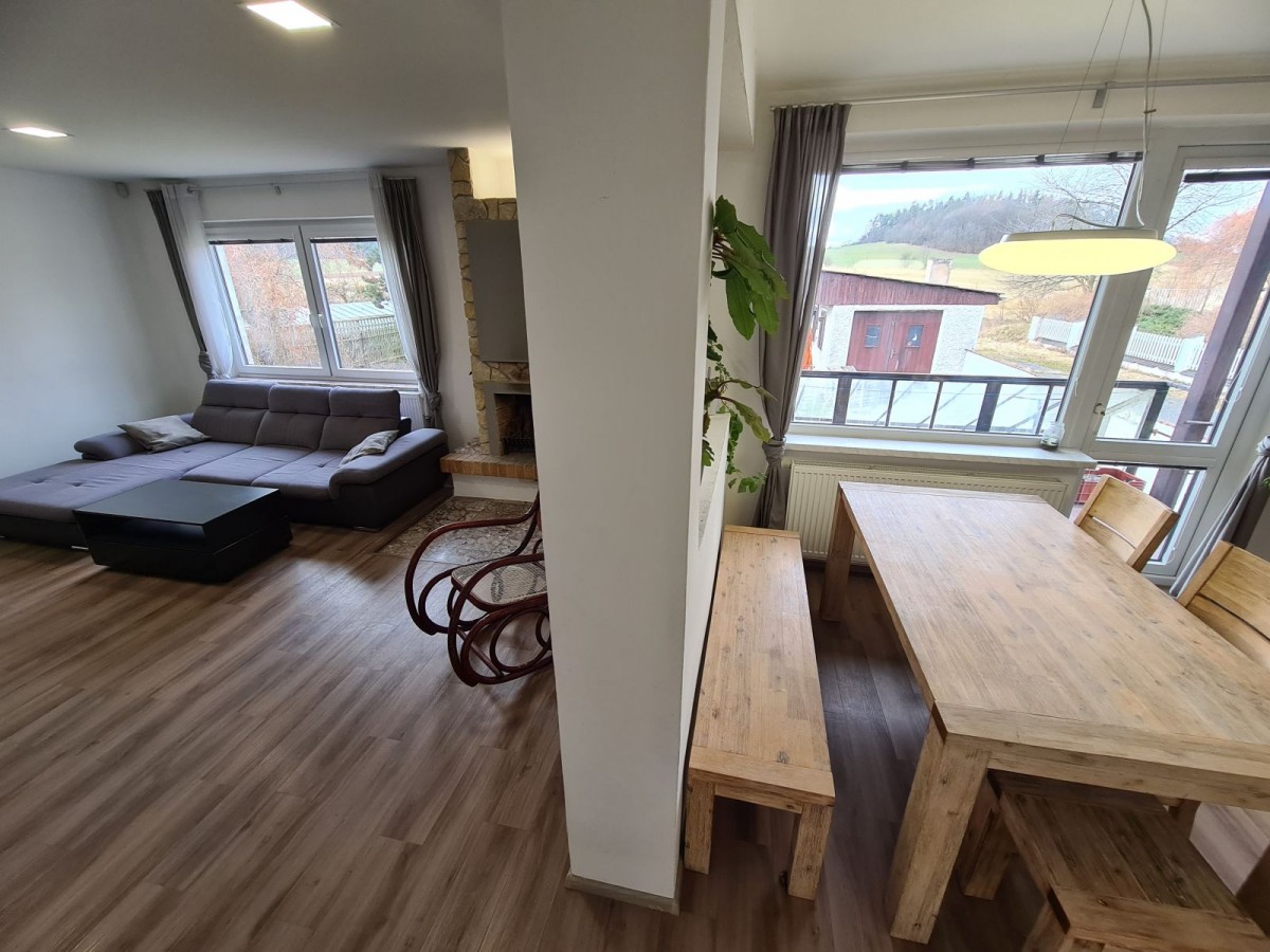 Prodej velice hezkého a z větší části rekonstruovaného / dvougeneračního / rodinného domu na okraji města Příbram IX, ulice U Lesa. Možnost dům užívat jako dvougenerační - zv. přízemí samostatná bytová jednotka 4 + 1, ...koupelna a sociální zařízení WC, šatna, lodžie - teráska a bytová jednotka ve sníženém přízemí - zatím 2 obytné místnosti, koupelna a sociální zařízení WC a možnost dodělání kuchyně, dále jsou ve sníženém přízemí velké úložné prostory, kotelna, garáž na 1 auto. Velice dobré a klidné bydlení na okraji města. Pozemek celkem 899 m2, z toho je zastavěná plocha 173 m2 a zahrada je 726 m2. Na zahradě zděná kolna - úložné prostory, hezký velký skleník. Dům má ústřední topení - radiátory - plynový kotel. Dále je dům připojený na obecní vodovod a kanalizaci a má silnou elektrickou přípojku 220/380V. PENB se připravuje, proto je nemovitost v inzerci G. Prohlídky domu po domluvě. Podrobné informace v RK.