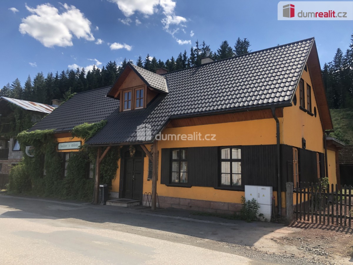 Zděný podsklepený objekt o podlahové pl...oše 230 m² se zahradou 645 m² se nachází na trase Hostinné směr Černá hora, Jánské Lázně. V blízkosti Ski areály Černý důl ( 7km ) , Mladé Buky ( 10km ), Černá hora ( 12km ) a Pec pod Sněžkou ( cca 25km )