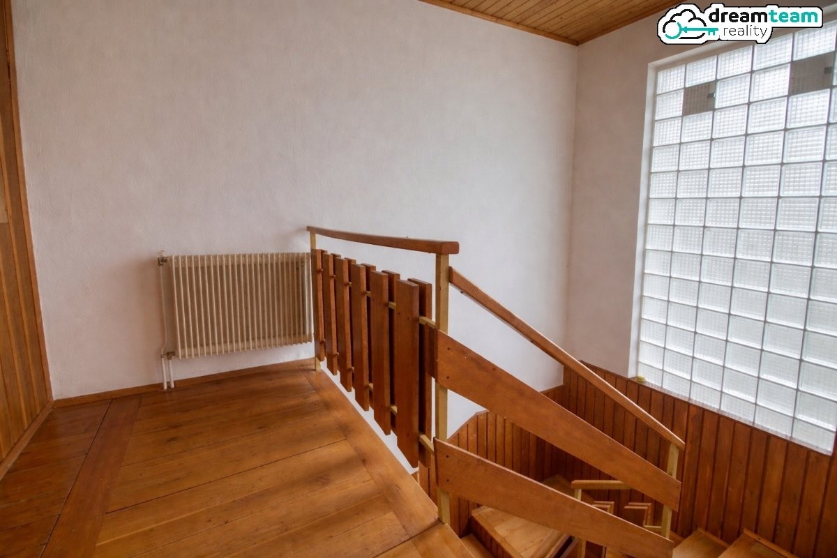 Přízemí je po rekonstrukci — plovoucí podlahy, nová koupelna s rohovou vanou, nové sociální zařízení WC a kuchyň s barem a zrcadlovým panelem, ze které se vychází rovnou na jižní terasu. Tři pokoje. Horní patro nabídne obývák s jídelnou, tři prostorné ložnice s parketami, kuchyni, koupelnu s vanou a balkón na západ. Každá rodina má svůj svět, ale ke společnému obědu mají pár schodů.