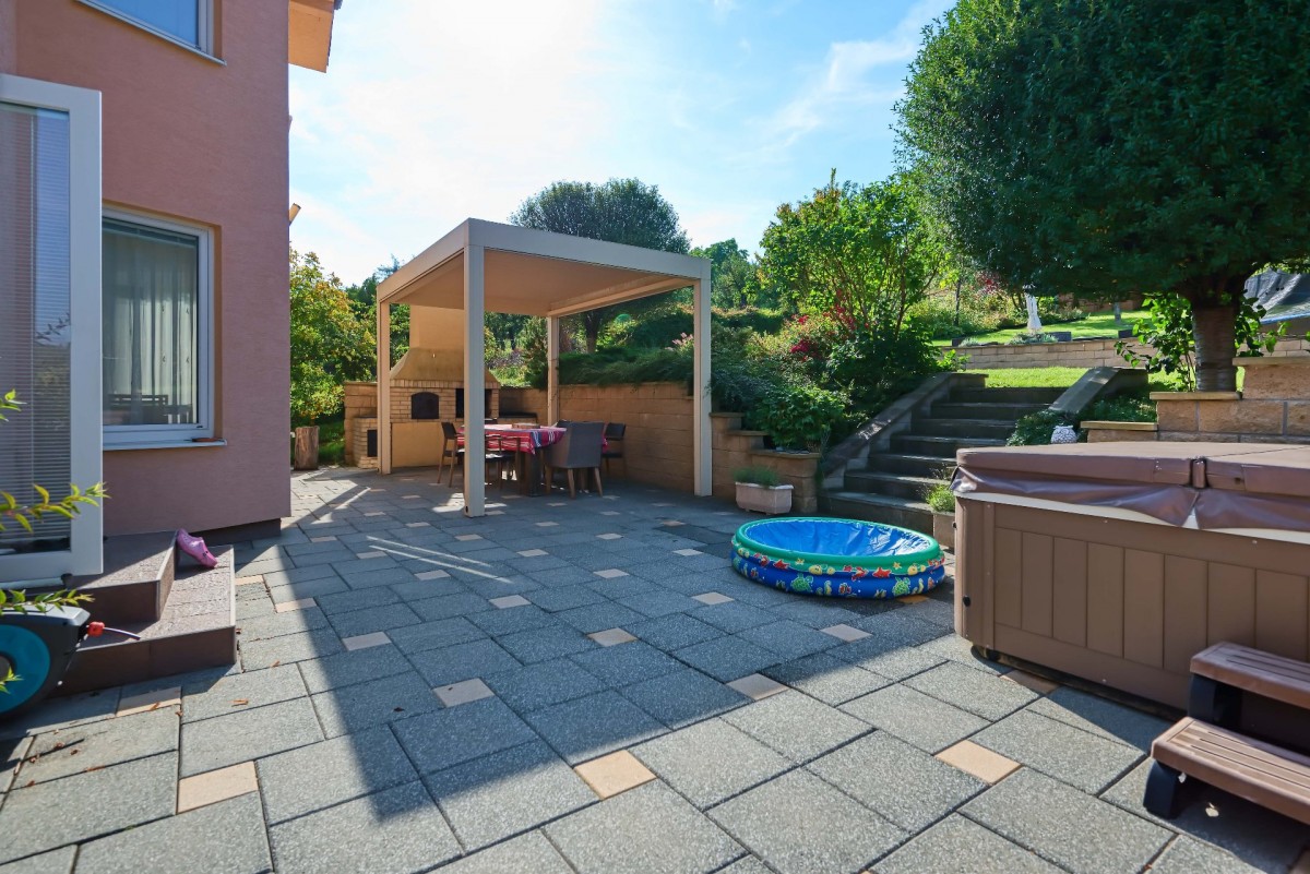 Prodej nadstandardní nízkoenergetické vily 5+1 s prostornou udržovanou zahradou, bazénem a venkovním posezením s krbem v Kanicích. Dům je novostavbou z roku 2007. Jedná se samostatn...ě stojící dům v klidné části obce, částečně podsklepený, se dvěma nadzemními podlažími. Nechybí prostorná dvojgaráž. K domu dále patří venkovní posezení s krbem pod hliníkovou pergolou s posuvným odstíněním. Dále venkovní zapuštěný bazén ohřívaný tepelným čerpadlem. Na dvůr volně navazuje prostorná, mírně svažitá, udržovaná zahrada s ovocnými stromy. Dům bude zájemci přenechán včetně veškerého vestavného nábytku, zbylý nábytek po osobní domluvě. Celková užitná plocha domu je 233 m2, výměra všech pozemků činí 1. 386 m2.