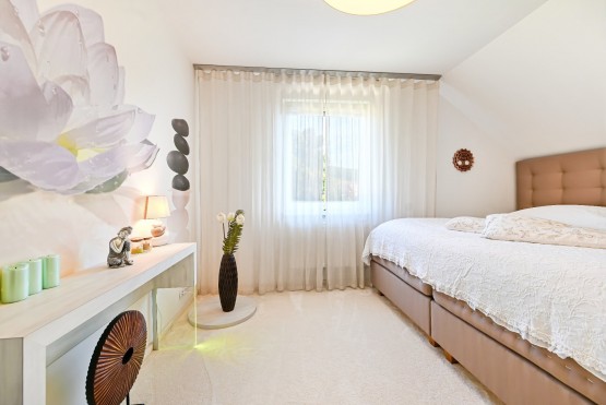 Klimatizace rozvedena do obývacího pokoje a v patře do všech obytných pokojů.