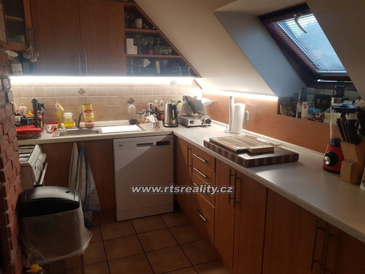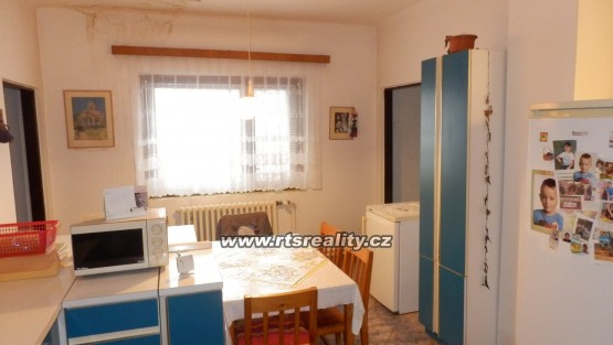 V prvním patře se nachází druhá bytová jednotka s vlastním vchodem o velikosti 3+kk, 100 m2 a s vlastními odběrnými místy. Dispozice bytu: zádveří, šatna, ložnice, dětský pokoj, obývací místnost s kuch. koutem s krbem (12/7), sociální zařízení WC a samostatná koupelna a terasa.