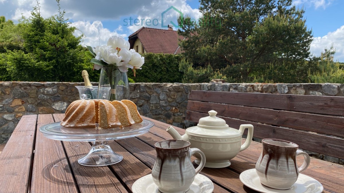 Kolem domu je krásná udržovaná zahrada se vzrostlými keři a stromy. Její součástí je 21 m2 velká venkovní terasa, která vybízí k příjemnému posezení s rodinou či přáteli a k relaxaci. Na zahradě je také venkovní ohniště, kde si na grilu či v kotlíku lze připravit kulinářské speciality.