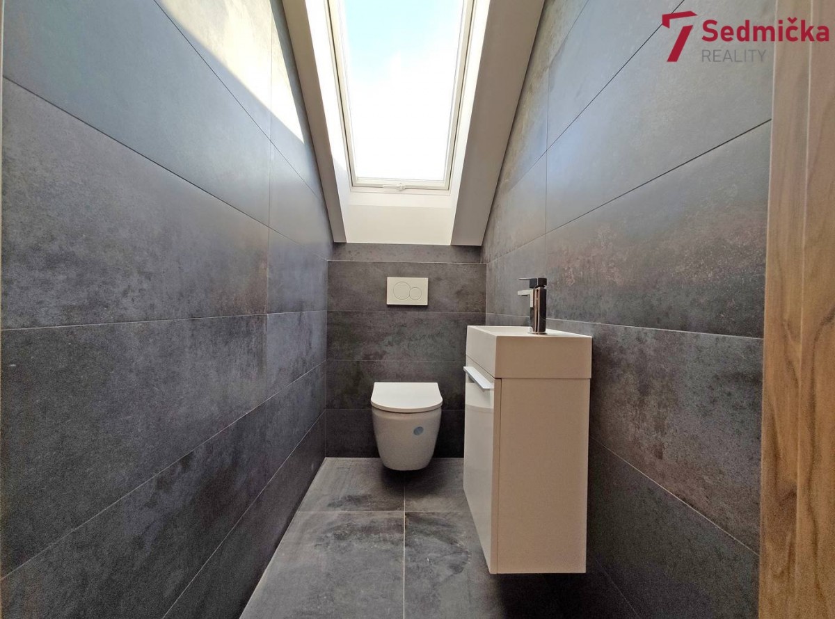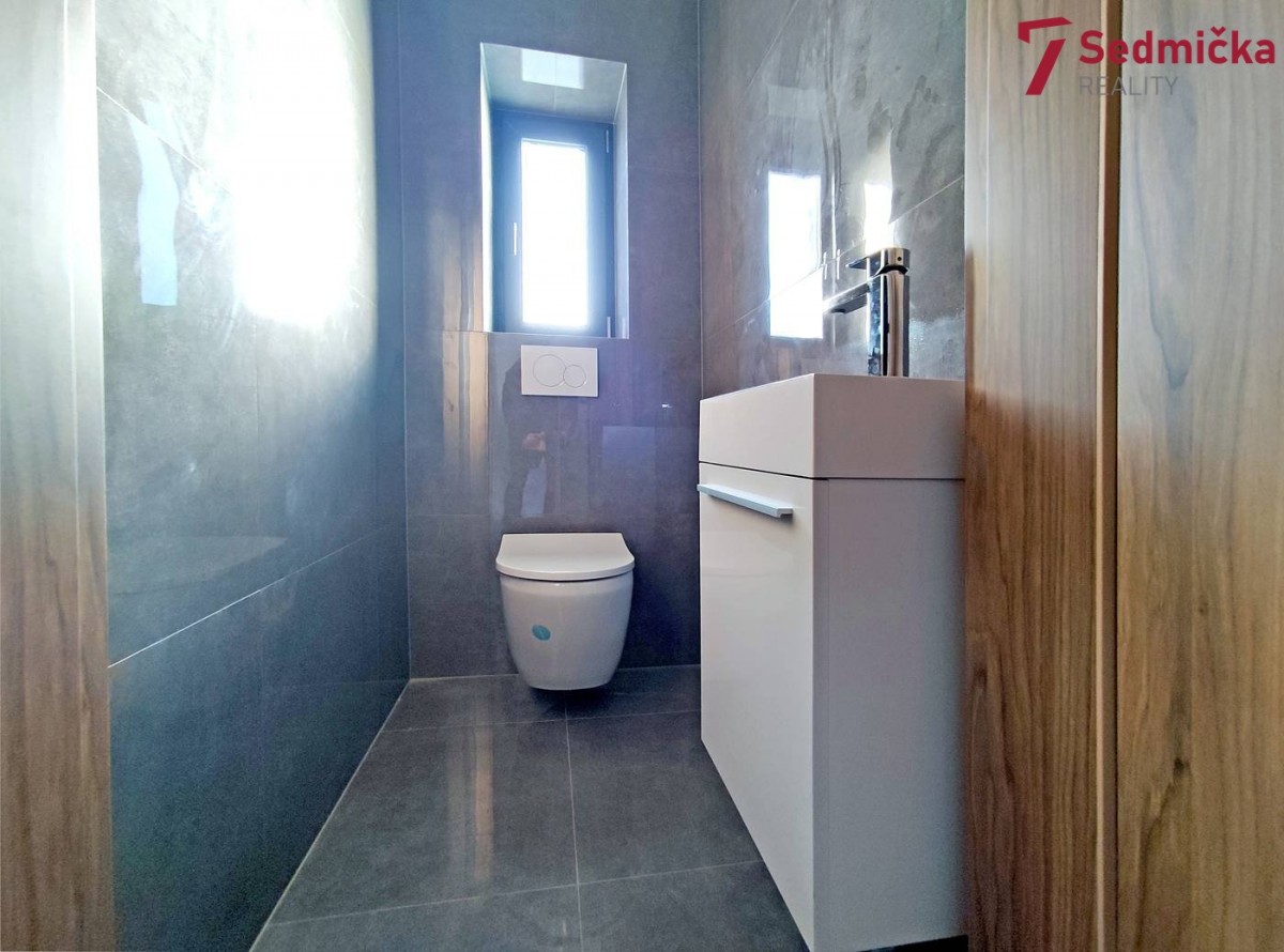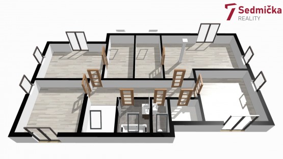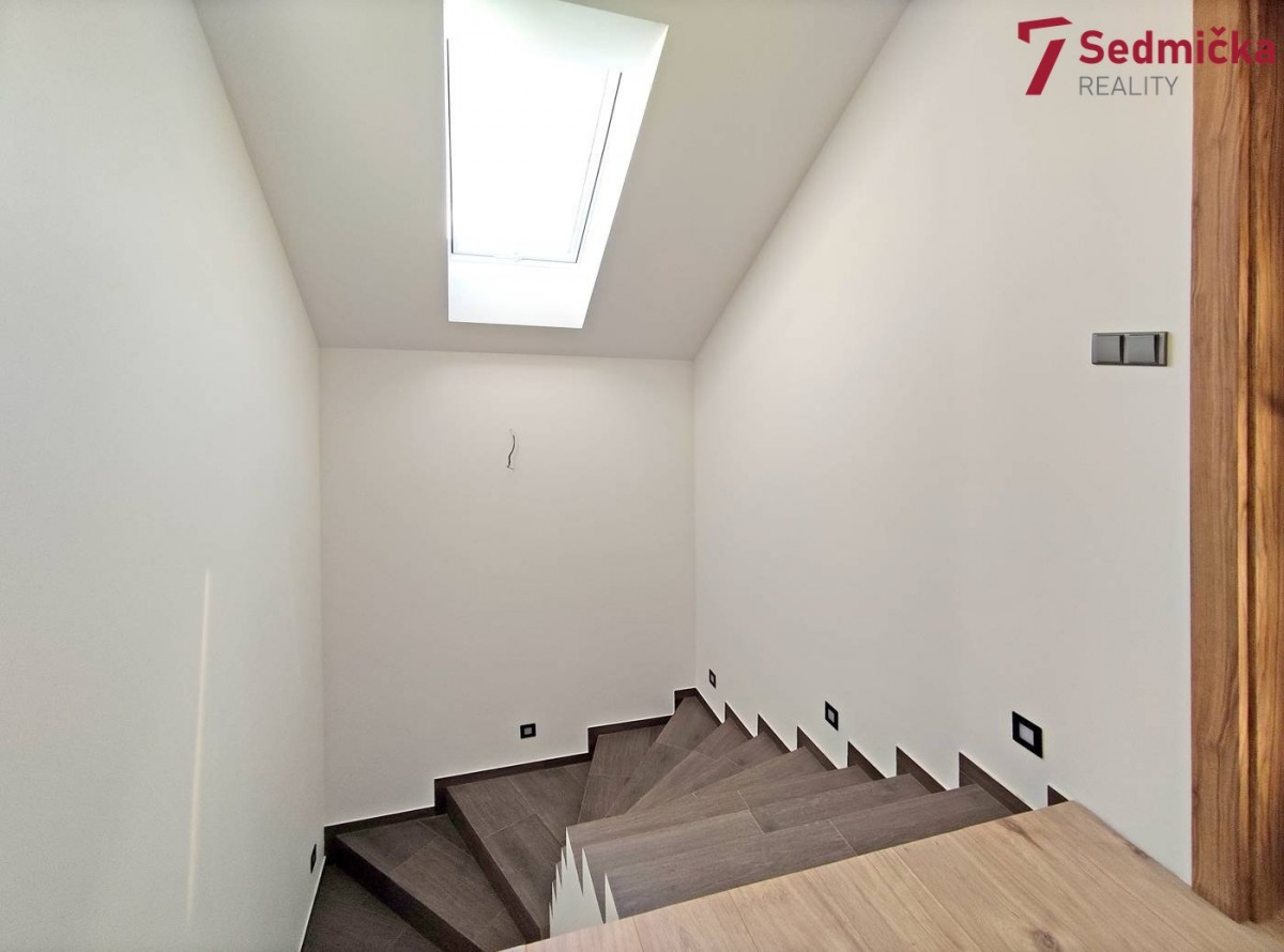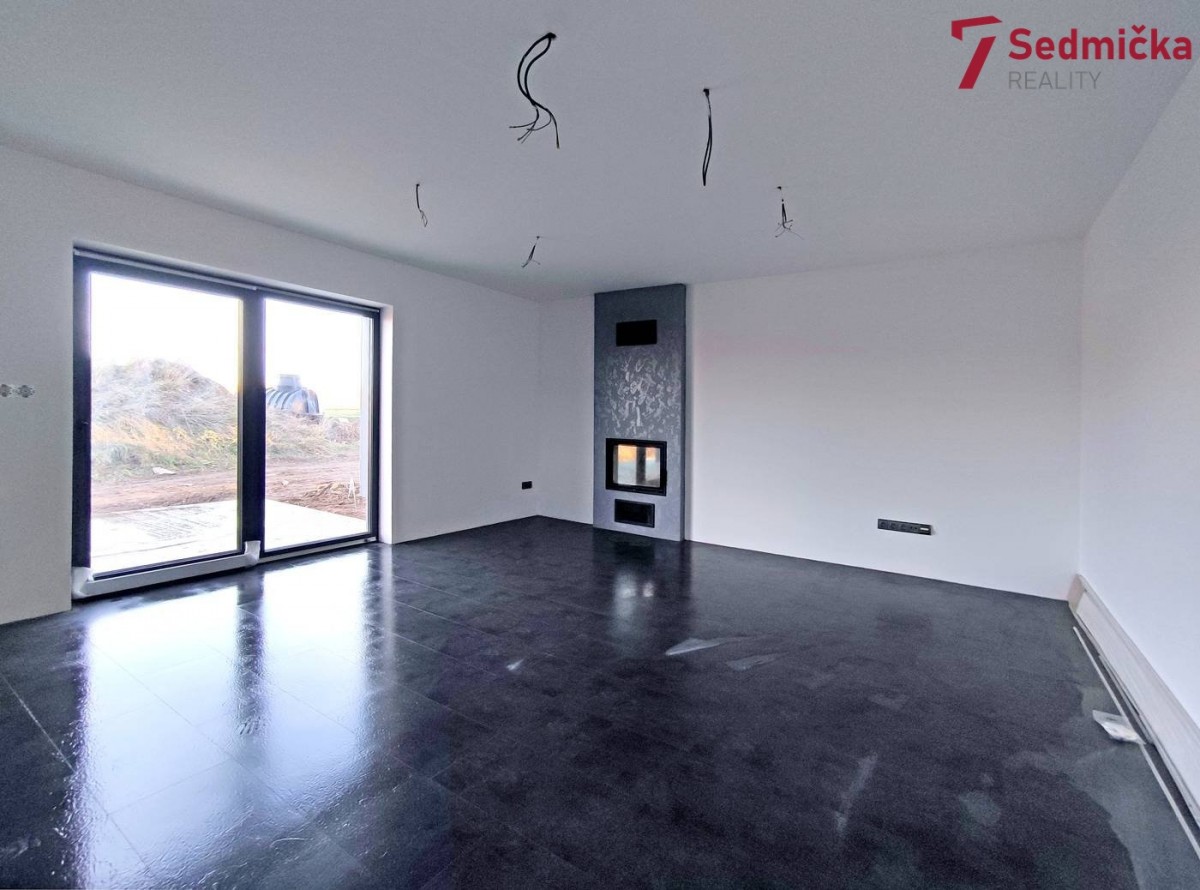 V domě s dispozicí 6+kk je v 1. NP (první nadzemní patro) prostorná kuchyň spojená s obývacím pokojem, z obývacího pokoje a z kuchyně je výstup na velkou terasu a do zahrady. Dále je zde pokoj, spíž, koupelna se sprchovým koutem, samostatné sociální zařízení WC, technická místnost, vstupní veranda a garáž; v 2. NP (druhé nadzemní patro) jsou čtyři pokoje, z toho dva mají navíc prostornou šatnu, koupelna s vanou, samostatné sociální zařízení WC, šatna a chodba. V obývacím pokoji je krb s přikládáním paliva z technické místnosti, v kuchyni je rohová kuchyňská linka se středovým panelem se sklokeramickou varnou deskou a digestoří. Rodinný dům je napojený na elektřinu, obecní vodovod, má septik s čističkou, vytápění domu je řešeno podlahovým topením napojeným na tepelné čerpadlo. Ohřev užitkové vody elektrickým bojlerem. Dům bude dokončen na jaře 2024 k nastěhování.