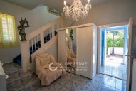 Hlavním vstupem se dostanete do prvního patra domu, vejdete do haly, odkud je vstup do obývacího pokoje a kuchyně, do velké pracovny s výhledem do zahrady, na záchod a po dřevěném schodišti vyjdete do druhého patra.