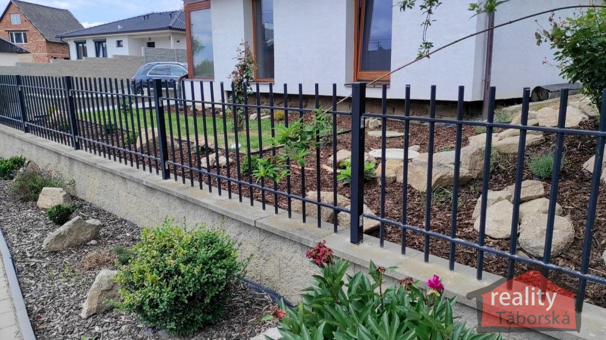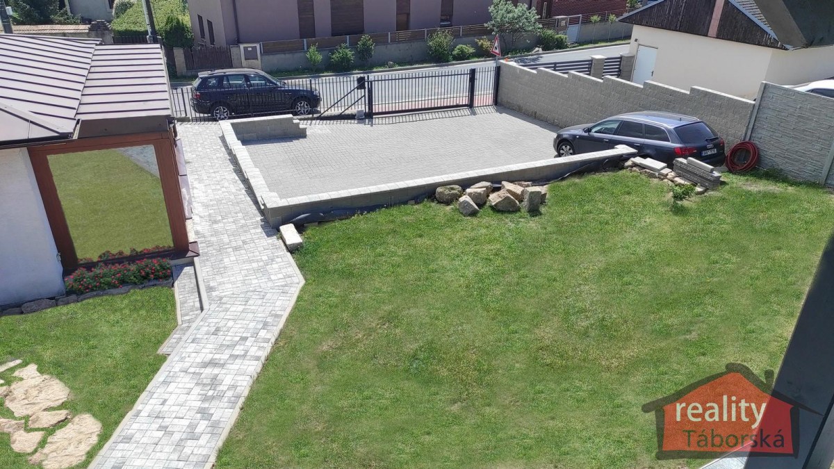Pohodlné parkování více vozidel zajišťuje prostorné zpevněné parkovací stání za posuvnou vjezdovou bránou ovládanou dálkovým ovládáním.