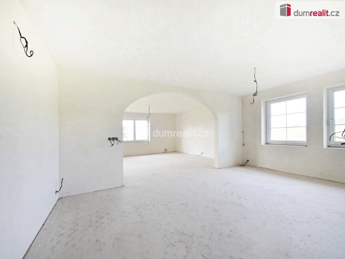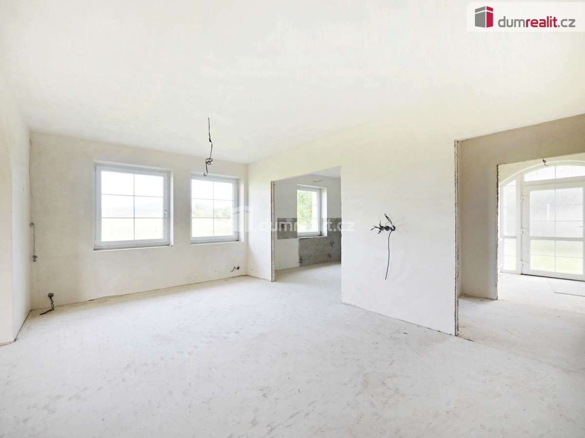 cena včetně provize a právníh oservisu.  Dumrealit. cz Vám nabízí prodej rodinného domu,  který lze dispozičně užívat jako 5 nebo 6+1.  Dům se nachází v obci Dlažkovice.  Katastrálně s...padá pod obec Podsedice.  Jedná se o novostavbu,  která byla postavená před 15 lety a není zatím zkolaudovaná.  Celková výměra pozemku je 1500 m².  Zastavěná plocha domu je 247 m².  Obytná plocha domu je 136, 2 m²,  + garáž 24, 3 m² + terasa 47 m².  Dům je postavený na místě s moc hezkým výhledem.  Jsou zde 3 pokoje,  pracovna,  kuchyň,  jídelna,  obývací pokoj,  spíž,  chodba,  zádveří,  šatna,  toaleta,  koupelna,  technická místnost a terasa,  která má přístup přes francouzská okna ze všech obytných pokojů.  Vytápění domu je řešeno podlahovým topením přes elektrický kotel.  V zádveří a v koupelně je možnost připojit na topný žebřík.  Předpřipraven rozvod centrálního vysavače.  Dům je zateplený,  má novou fasádu,  uvnitř nové omítky a rozvod elektroinstalace,  zateplené podlahy,  stropy,  plastová okna,  dveře,  zdivo  -  tvárnice.  Zbývá osadit světla,  vypínače,  zásuvky,  podlahovou krytinu,  vybudovat jímku pro svod odpadů,  koupelnu,  sociální zařízení WC,  kuchyňskou linku,  interiérové dveře a podlahu v garáži.  Zavírání garážových vrat je na dálkové ovládání.  V podkroví domu,  které je v tuto chvíli zatím přístupné jen po žebříku je možnost vybudování další bytové jednotky.  Je sem přivedený svod odpadu,  vody a zavedená elektřina.  Výhodou domu je,  že si nový majitel může dodělat dle svých představ obklad koupelny,  toalety,  podlahových krytin a kuchyňské linky.  V případě zájmu o prohlídku,  kontaktujte makléřku,  která Vás touto nemovitostí ráda provede.  Ev.  číslo:  652087.  Energetický štítek:  G
