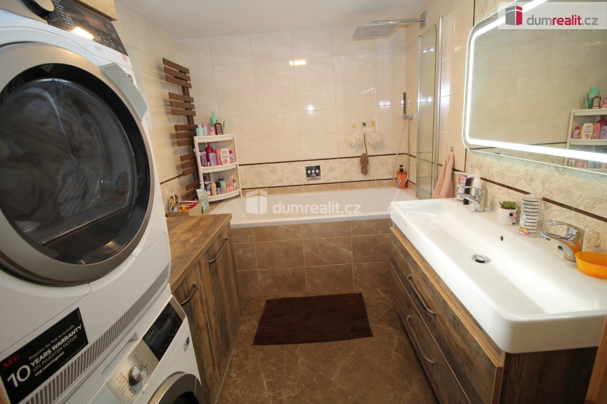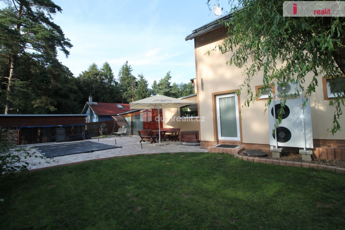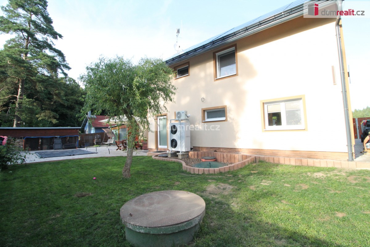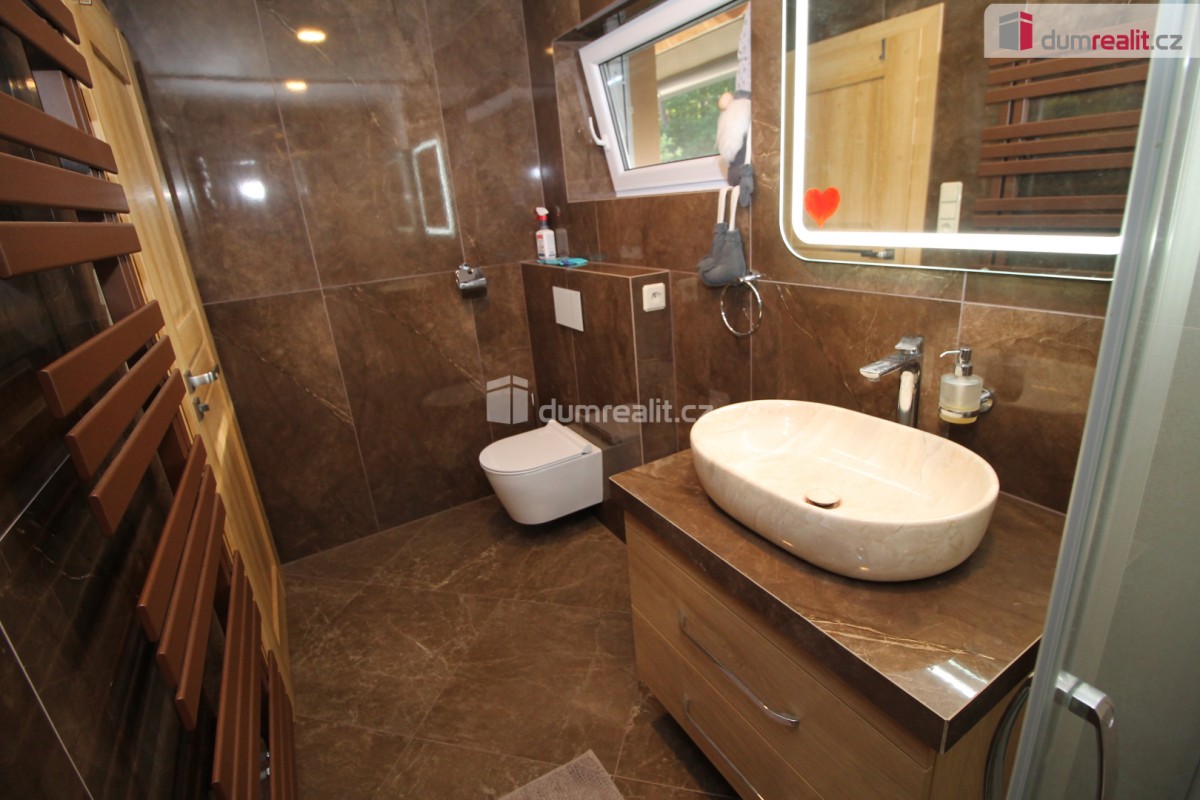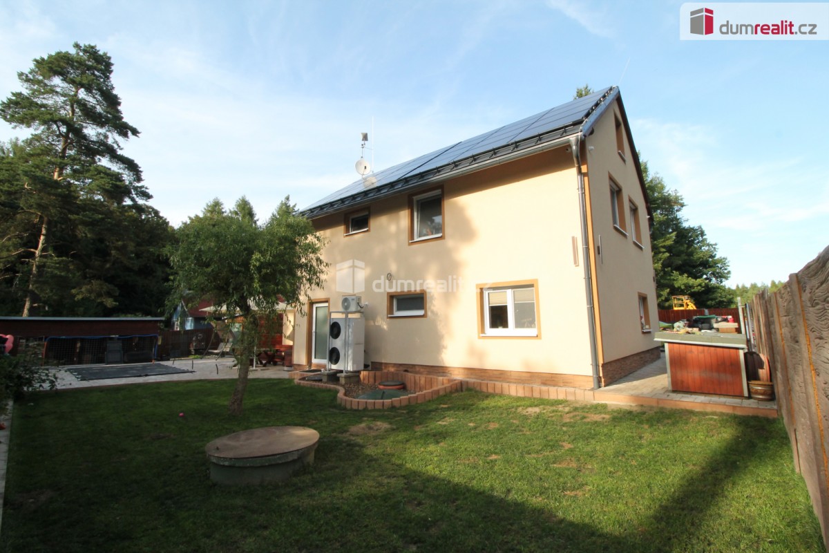 Dumrealit. cz Vám nabízí koupi mimořádné a vyjímečné nemovitosti, rodinného domu po kompletní rekonstrukci o dispozici 6+1 v Děpoltovicích nedaleko Karlových Varů. Dům obklopuje upra...vená zahrada o celkové rozloze 629 m² (z čehož 167 m² tvoří zastavěná plocha domu), na které se nachází bazén, terasa, přístavky s úložným prostorem a příslušné technologie. Majitelé během let dům postupně zvelebovali, rekonstrukce zahrnuje kompletně novou elektroinstalaci, vodoinstalaci, štuky, omítky, zdi, koupelny, kuchyni, okna, střechu, krov, podlahy atd. . Okna jsou kvalitní trojskla, ve všech jsou instalované předokenní bezpečnostní rolety a sítě proti hmyzu. Kompletně v celém domě (včetně garáže) je podlahové vytápění, vytápění zajišťuje tepelné čerpadlo a solární panely na střeše s tím, že přebytky se prodávající do sítě což činí dům téměř beznákladový (náklady cca 20. 000, - Kč ročně). Pro ohřev teplé vody slouží velkokapacitní nádoba na ohřev teplé vody. Dům je samozřejmě zateplený (20 cm vata na fasádě, dále pod střechu a na podlaze půdy je foukaná izolace), kolem domu je hydroizolace. V obývacím pokoji/zimní zahradě je navíc příprava na krbová kamna. Voda je ze studny (9 m), dále z vrtu (18 m), dále si majitel nechá vozit cisternu s pitnou vodou, která se přečerpá do nádrže zabudované na zahradě. Zdroje vody se dají libovolně přepínat. Odpad je do ČOV (osobní vlastnictví) (čističky odpadních vod) a dále se již čistá voda odvádí z domu skrze vsak. V celém domě je klimatizace a ozónová čistička vzduchu, která pohlcuje jak prach, tak zvířecí chlupy a vypouští kladné ionty. Všechen nábytek v domě je na míru od truhláře (většina zůstává a je součástí ceny). V přízemí je obývací pokoj, herna, kuchyně s jídelním koutem (pod kuchyní je sklep), pracovna, šatna, koupelna s vanou, samostatné sociální zařízení WC s umyvadlem, předsíň s vestavěnými skříněmi, chodba se schodištěm a technická místnost s sociální zařízení WC. Dále je z chodby přístupná obrovská garáž s umyvadlem, kde také zůstávají prostorné vestavěné skříně a kudy se dá také projít zadem na zahradu. Nad garáží je další půda. K dispozici je nabíječka na elektroauto. Terasa je přístupná jak z obýváku tak z technické místnosti, kde je k dispozici třetí toaleta. V prvním patře jsou 2 dětské pokoje, další koupelna se sprchou a toaletou, rodičovská ložnice se vstupem na horní terasu a vstup na půdu, kde by mohly vzniknout další dva pokoje. V objektu je kamerový systém a dům je napojen na pult bezpečnostní ochrany. Dům se nachází ve velice pěkné lokalitě blízko Děpoltovického rybníku, kde je možné jezdit na koních, je zde restaurace, hotel, hospůdka, pravidelně se pořádají společenské akce (hlavně v létě) avšak je zde klid a příjemná atmosféra. Do pár minut jízdy autem jsou Karlovy Vary, kde je veškerá občanská vybavenost včetně bank, úřadů a restaurací. K dispozici je OC Varyáda (10 km), OC Fontána, KV Aréna. Cena je včetně provize RK. Ev. číslo: 652105. Energetický štítek: D (5 kWh/m2/rok).