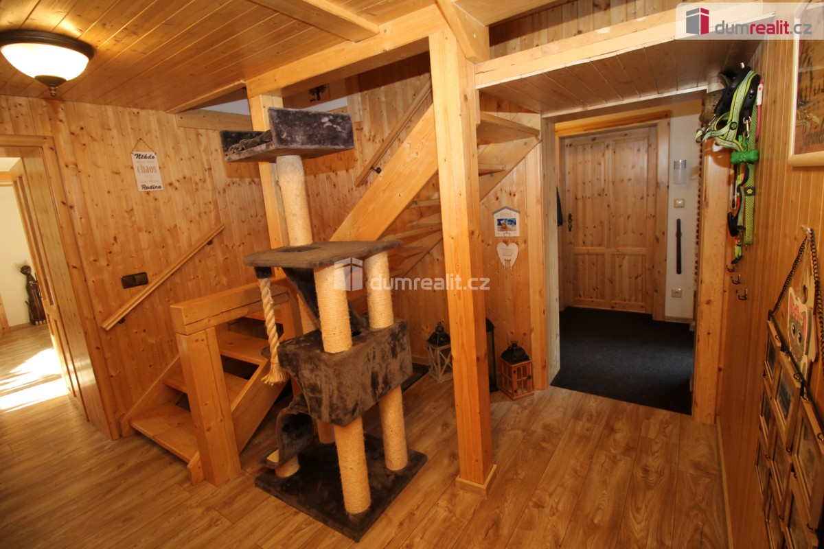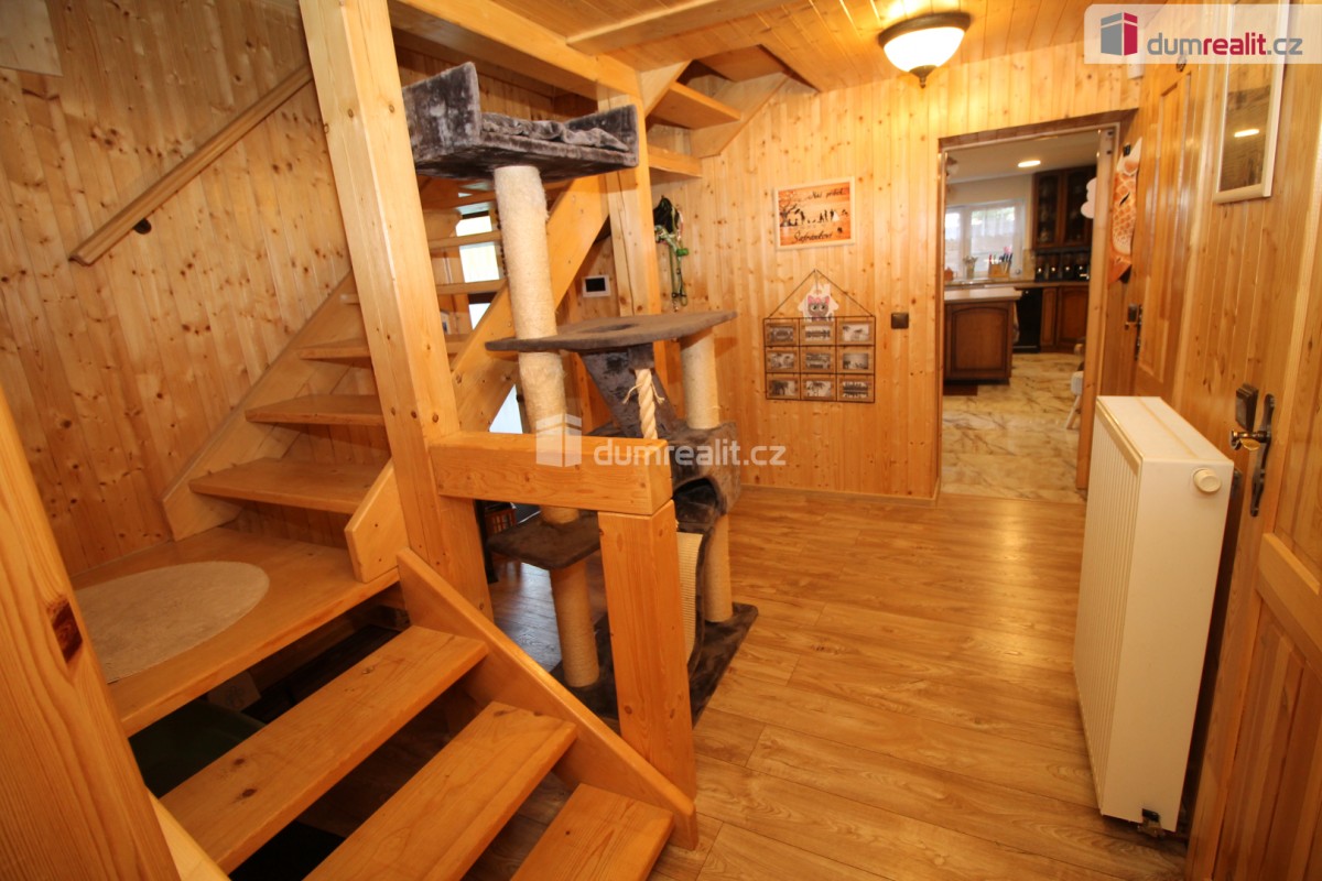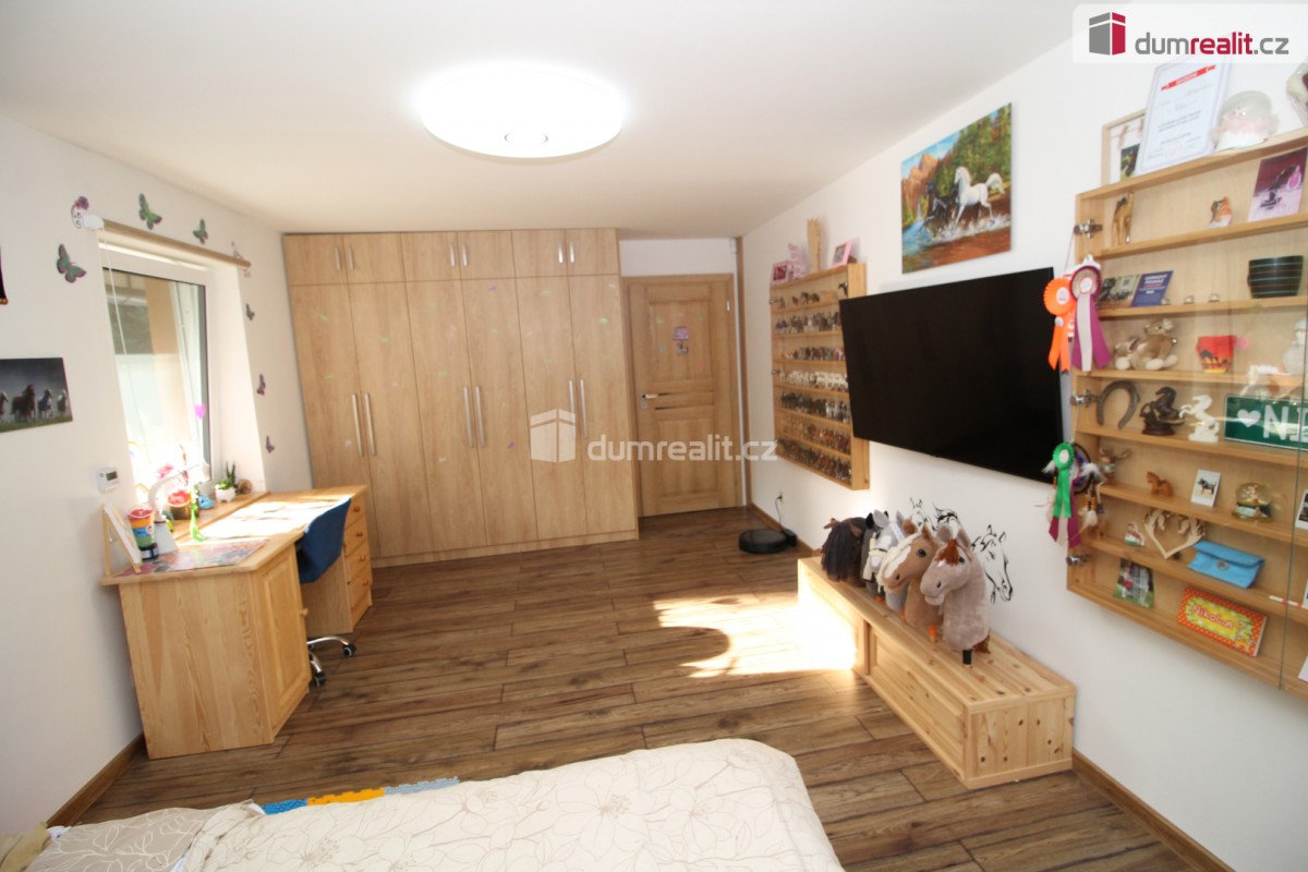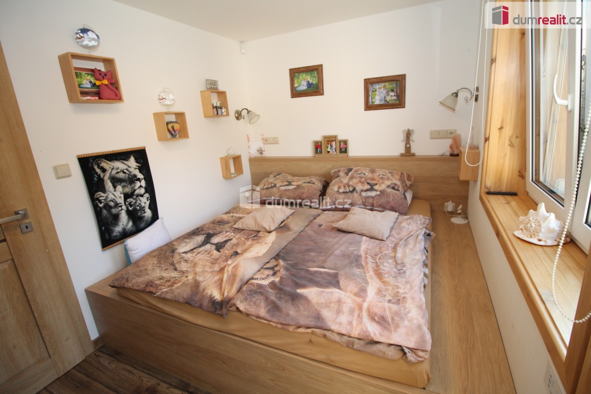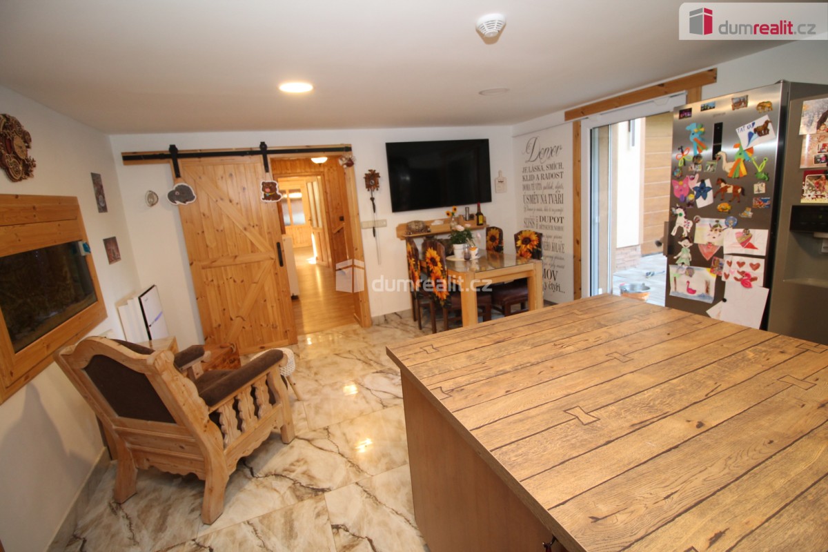 Dumrealit. cz Vám nabízí koupi mimořádné a vyjímečné nemovitosti, rodinného domu po kompletní rekonstrukci o dispozici 6+1 v Děpoltovicích nedaleko Karlových Varů. Dům obklopuje upra...vená zahrada o celkové rozloze 629 m² (z čehož 167 m² tvoří zastavěná plocha domu), na které se nachází bazén, terasa, přístavky s úložným prostorem a příslušné technologie. Majitelé během let dům postupně zvelebovali, rekonstrukce zahrnuje kompletně novou elektroinstalaci, vodoinstalaci, štuky, omítky, zdi, koupelny, kuchyni, okna, střechu, krov, podlahy atd. . Okna jsou kvalitní trojskla, ve všech jsou instalované předokenní bezpečnostní rolety a sítě proti hmyzu. Kompletně v celém domě (včetně garáže) je podlahové vytápění, vytápění zajišťuje tepelné čerpadlo a solární panely na střeše s tím, že přebytky se prodávající do sítě což činí dům téměř beznákladový (náklady cca 20. 000, - Kč ročně). Pro ohřev teplé vody slouží velkokapacitní nádoba na ohřev teplé vody. Dům je samozřejmě zateplený (20 cm vata na fasádě, dále pod střechu a na podlaze půdy je foukaná izolace), kolem domu je hydroizolace. V obývacím pokoji/zimní zahradě je navíc příprava na krbová kamna. Voda je ze studny (9 m), dále z vrtu (18 m), dále si majitel nechá vozit cisternu s pitnou vodou, která se přečerpá do nádrže zabudované na zahradě. Zdroje vody se dají libovolně přepínat. Odpad je do ČOV (osobní vlastnictví) (čističky odpadních vod) a dále se již čistá voda odvádí z domu skrze vsak. V celém domě je klimatizace a ozónová čistička vzduchu, která pohlcuje jak prach, tak zvířecí chlupy a vypouští kladné ionty. Všechen nábytek v domě je na míru od truhláře (většina zůstává a je součástí ceny). V přízemí je obývací pokoj, herna, kuchyně s jídelním koutem (pod kuchyní je sklep), pracovna, šatna, koupelna s vanou, samostatné sociální zařízení WC s umyvadlem, předsíň s vestavěnými skříněmi, chodba se schodištěm a technická místnost s sociální zařízení WC. Dále je z chodby přístupná obrovská garáž s umyvadlem, kde také zůstávají prostorné vestavěné skříně a kudy se dá také projít zadem na zahradu. Nad garáží je další půda. K dispozici je nabíječka na elektroauto. Terasa je přístupná jak z obýváku tak z technické místnosti, kde je k dispozici třetí toaleta. V prvním patře jsou 2 dětské pokoje, další koupelna se sprchou a toaletou, rodičovská ložnice se vstupem na horní terasu a vstup na půdu, kde by mohly vzniknout další dva pokoje. V objektu je kamerový systém a dům je napojen na pult bezpečnostní ochrany. Dům se nachází ve velice pěkné lokalitě blízko Děpoltovického rybníku, kde je možné jezdit na koních, je zde restaurace, hotel, hospůdka, pravidelně se pořádají společenské akce (hlavně v létě) avšak je zde klid a příjemná atmosféra. Do pár minut jízdy autem jsou Karlovy Vary, kde je veškerá občanská vybavenost včetně bank, úřadů a restaurací. K dispozici je OC Varyáda (10 km), OC Fontána, KV Aréna. Cena je včetně provize RK. Ev. číslo: 652105. Energetický štítek: D (5 kWh/m2/rok).