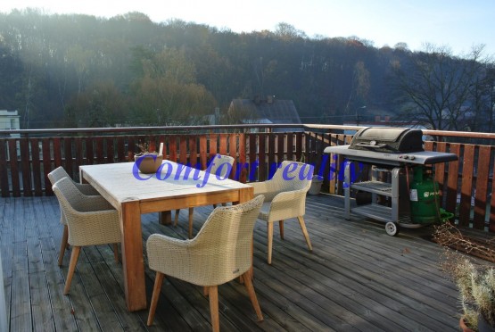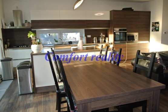 V zastoupení majitele si vám dovoluji nabídnout ke koupi atraktivní nemovitost v Ostravě, Petřkovicích. Předmětem prodeje je dům, ve kterém je byt, který je netradičně řešen na patro s dispozicí ...chyňský kout">5+kk. Bydlení v tomto domě je ideální volbou pro člověka, který si chce užívat komfortu rodinného domu a přitom nebýt otrokem zahradního nářadí a starání se o zahradu. Toto bydlení v sobě skrývá nadstandardní a funkční prostory jak pro běžný provoz, tak i pro volný čas ve formě posezení na prostorné terase, relaxaci ve vlastní sauně nebo také komfortem vlastního vinného sklípku. Vše je umocněno hezkými výhledy z terasy do okolní zeleně. Interiér je po moderní a vkusné rekonstrukci (cca 5 let), každé z pater je vybaveno koupelnou, jsou zde také vychytávky ve formě šaten a vestavných skříní a spousta dalších praktických drobností, které zpříjemní bydlení. O vytápění a ohřev vody se stará moderní kondenzační kotel, který je zárukou ekonomického provozu. Součástí prodeje je dvojgaráž ihned vedle domu. Nabídka bydlení, která nadchne, výborná dostupnost do centra města, na dálnici a přitom v klidové zóně. Bezproblémové parkování, obslužnost MHD, sportovní vyžití a veškerá občanská vybavenost na dosah. Doporučuji.
