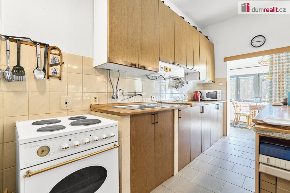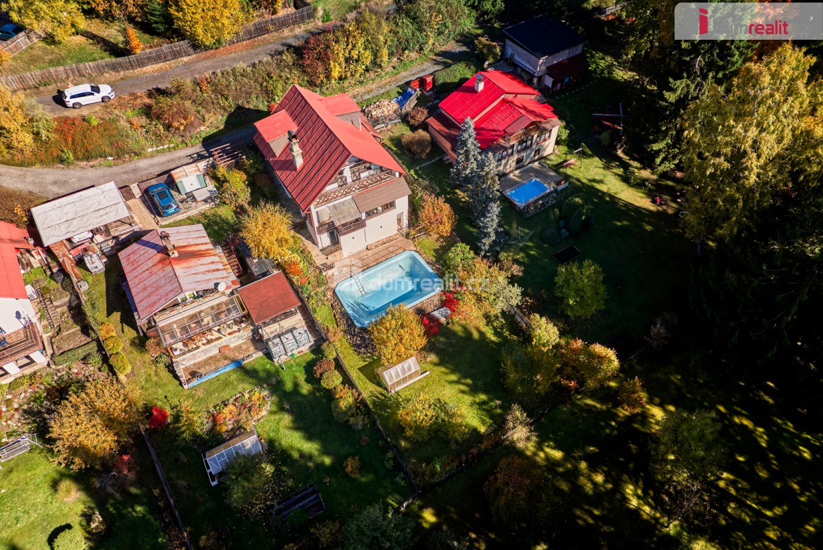 V zahradě naleznete bazén, kde se můžete v horkých letních dnech osvěžit. Samotný dům byl dostavěn v roce 2001 a zdá se, že ho čas šetřil. Jedná se o částečně podsklepený dvoupodlažní objekt určený k trvalému obývání. Přízemí nabízí prostornou halu s kuchyňským koutem, jídelnou a spížemi, hostinský pokoj a sociální zařízení. V patře najdete dvě prostorné ložnice s výstupem na terasu, obývací pokoj, kuchyň se spíží a další sociální zařízení. K dispozici je také podkroví, které lze dále využít podle vlastních potřeb. Dům má dva samostatné vchody, dispozičně tedy může sloužit jako vícegenerační.
