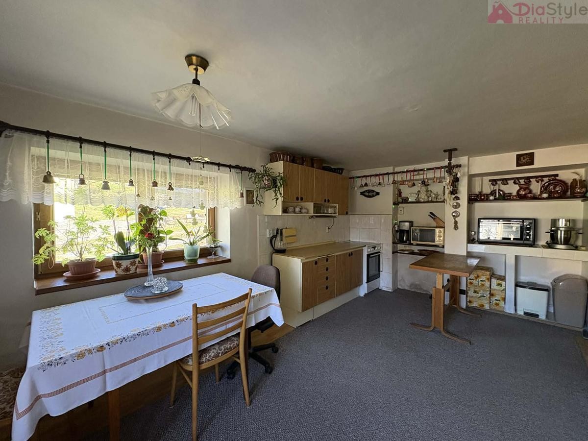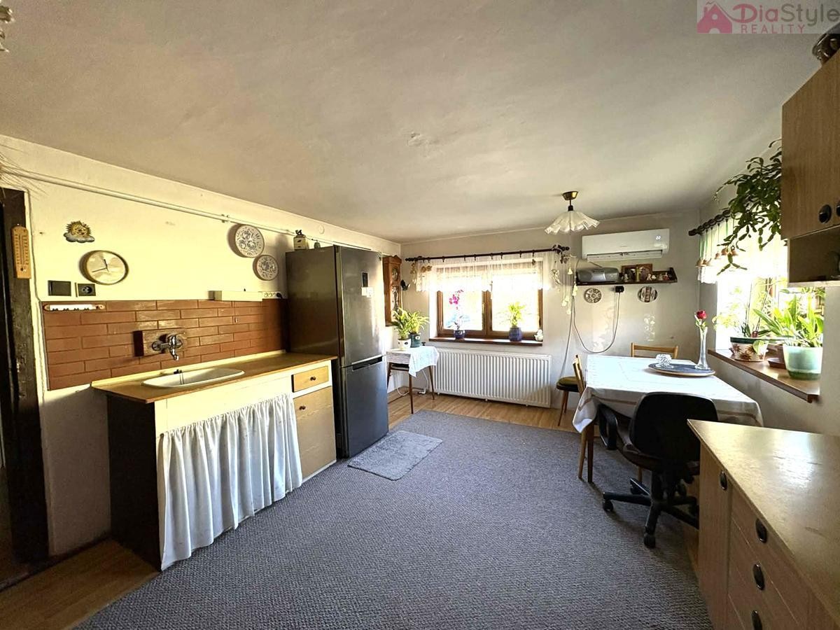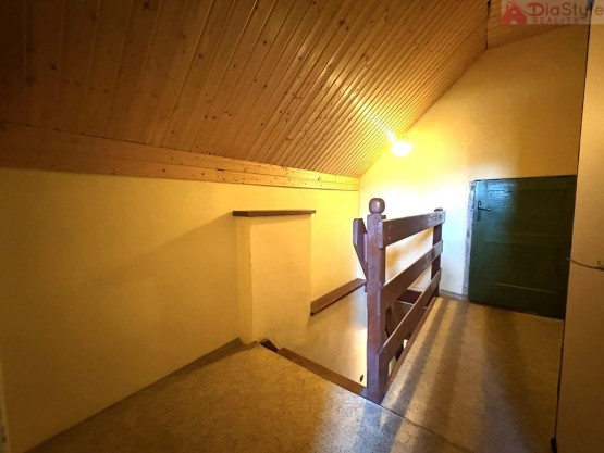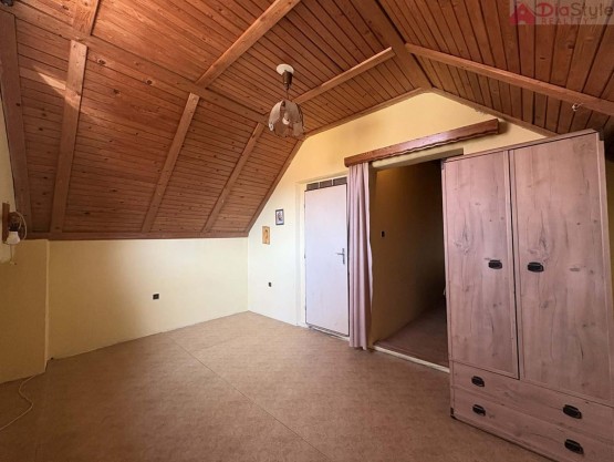 Dispozice domu: přízemí: po vstupu do domu projdeme předsíní do obytné části, kde jsou 3 pokoje, kuchyně, spižírna, koupelna, sociální zařízení WC, komora, dále navazuje kotelna a vstup do zahrady. 1NP (první nadzemní patro): schodiště, chodba, 2 krát pokoj, půda - kde je možnost přestavby na další pokoje.