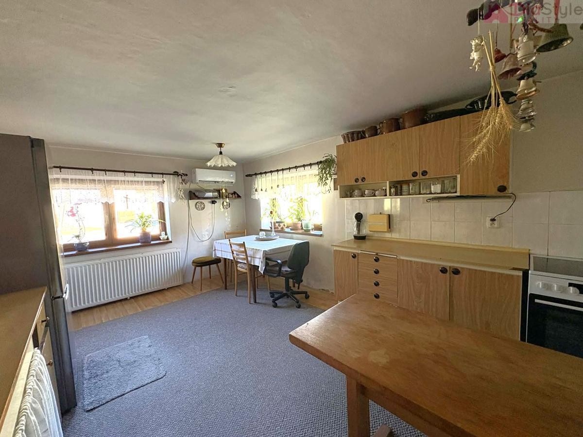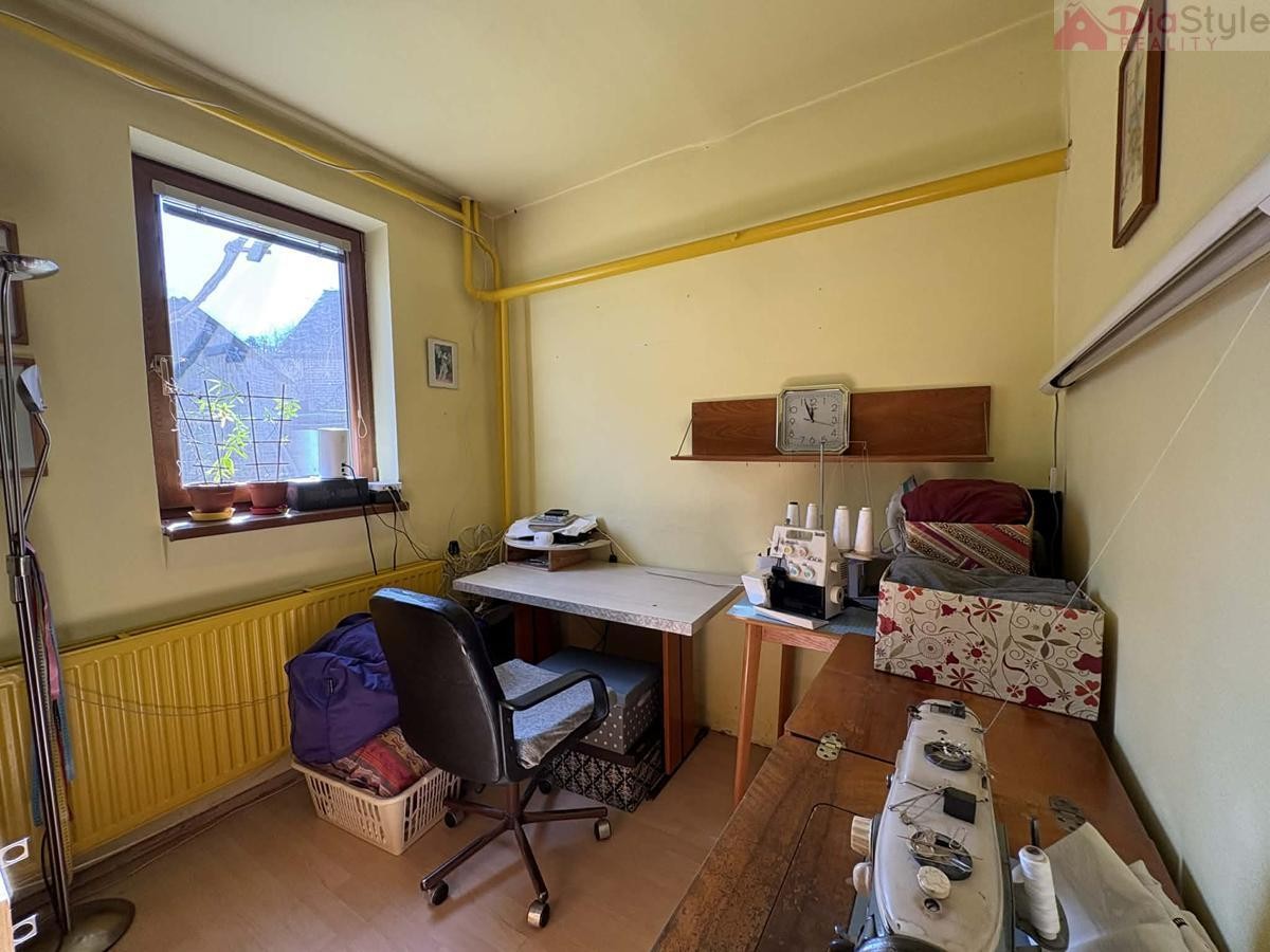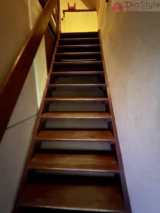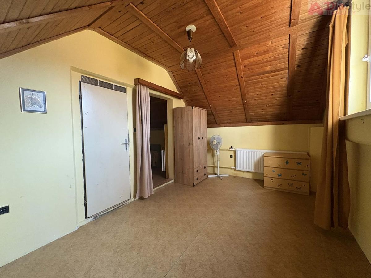 Dispozice domu: přízemí: po vstupu do domu projdeme předsíní do obytné části, kde jsou 3 pokoje, kuchyně, spižírna, koupelna, sociální zařízení WC, komora, dále navazuje kotelna a vstup do zahrady. 1NP (první nadzemní patro): schodiště, chodba, 2 krát pokoj, půda - kde je možnost přestavby na další pokoje.