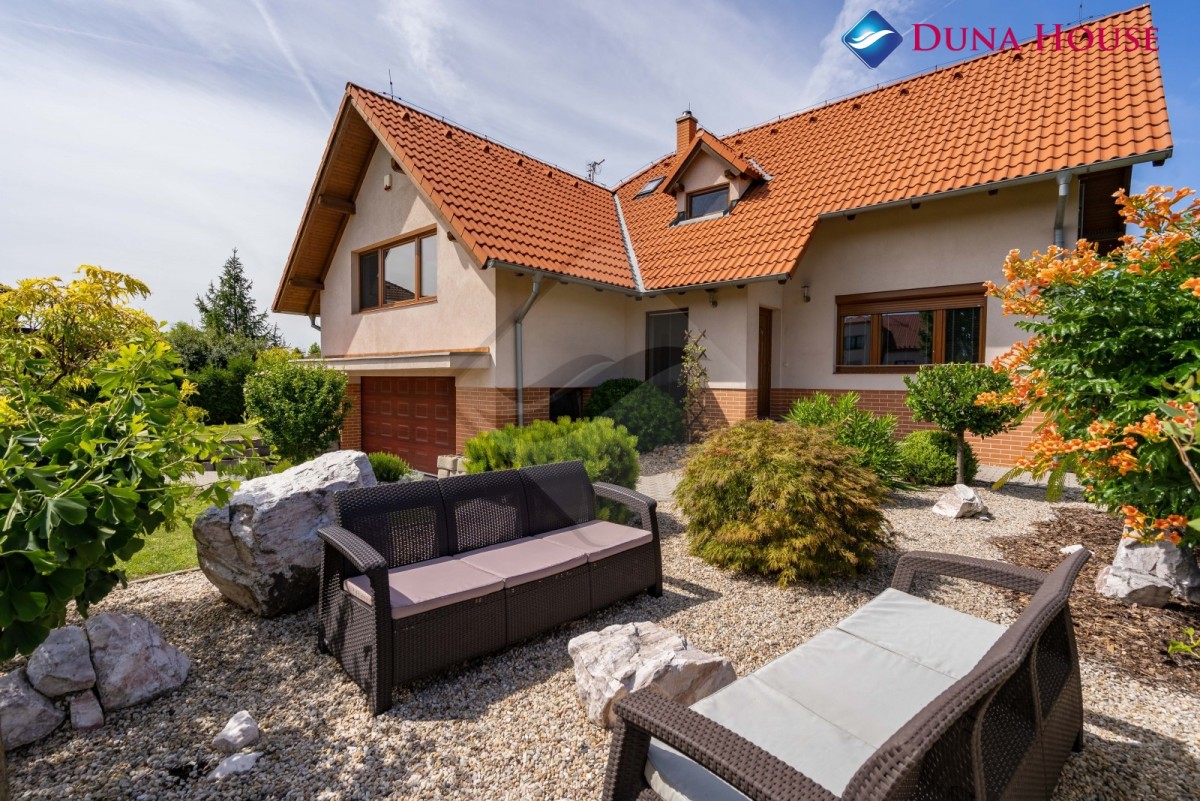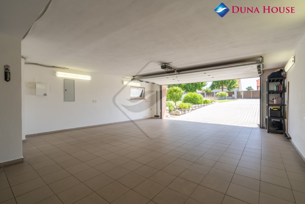 V suterénu je umístěna velká garáž pro dva automobily, technické zázemí, výstup na zahradu, kde je bazén, venkovní sezení a oáza klidu.