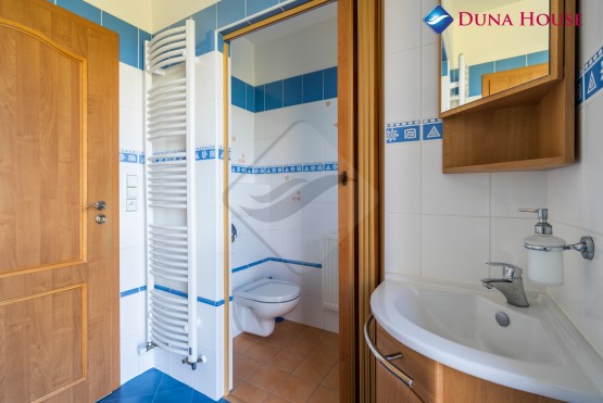 Po moc hezkých schodech vyjdete do obývacího prostoru, který je spojen s moderně vybavenou kuchyní. V tomto patře je také manželská ložnice se samostatným soc. zařízením. V posledním patře této vily jsou dvě ložnice a herna.