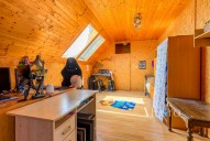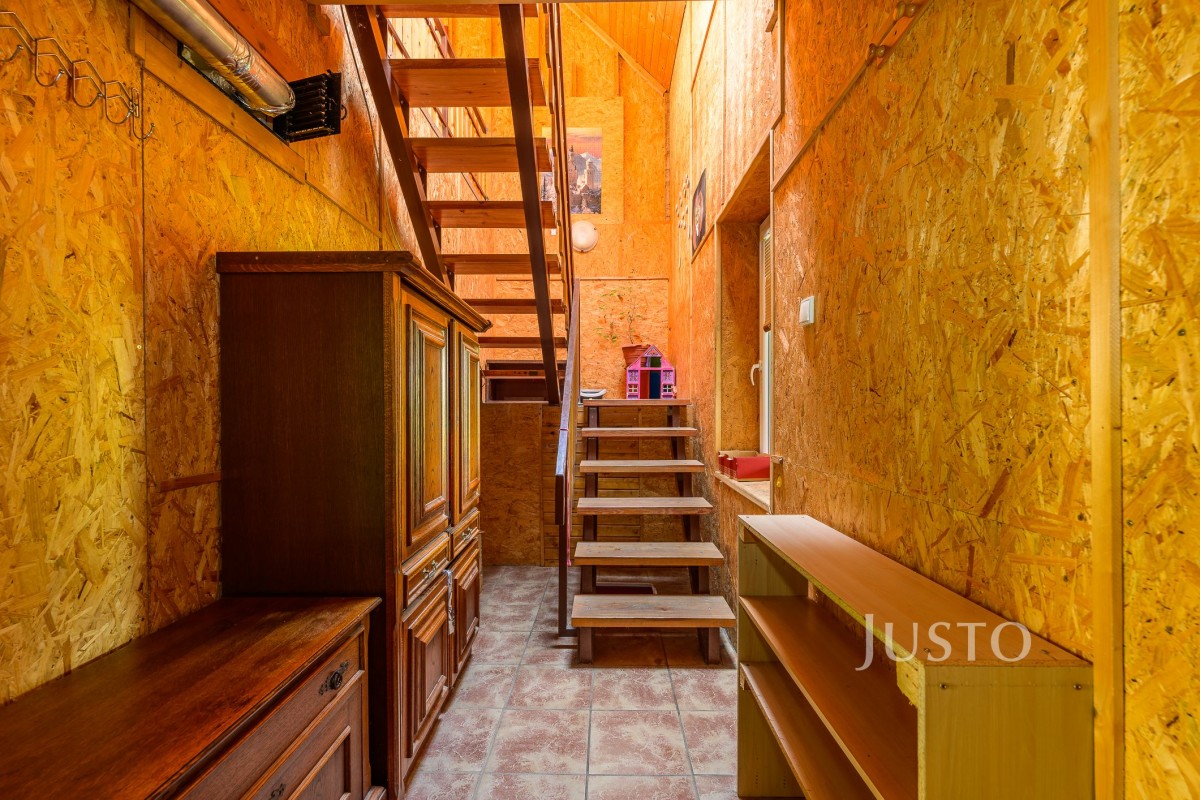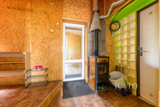Další zdroj topení jsou krbová kamna na dřevo s rozvody tepla, která jsou v chodbě a přivádějí potrubím teplo do obývacího pokoje v přízemí.