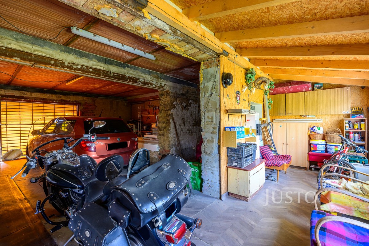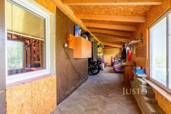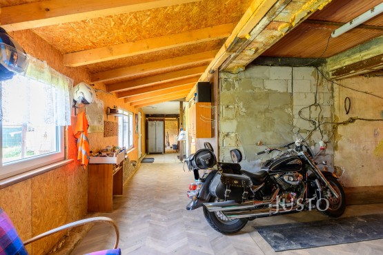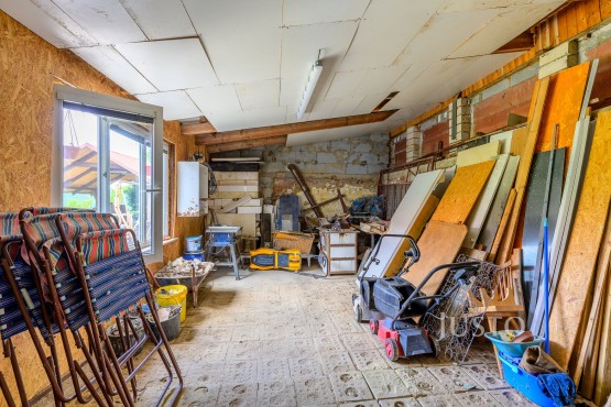 V přízemí je pokoj, kuchyň s komorou, koupelna se sprchovým koutem a sociální zařízení WC, chodba, garáž, dílna a schodiště do patra. Jsou zde plastová okna.