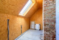 Rozdělení místností v patře je stavebně provedeno většinou z konstrukce OSB desek a dřevěné nosné konstrukce, sociální zařízení WC, nejbližší pokoj k sociální zařízení WC a koupelna ve výstavbě je vystavěna z Porfixu.