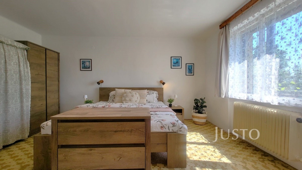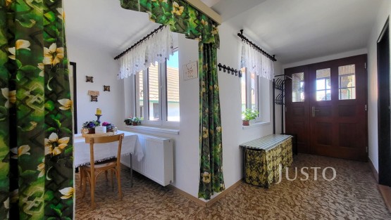 Do domu se vstupuje přes uzavřené zádveří. Z chodby je přístupný obývací pokoj, který je průchozí do ložnice. Další pokoj je se samostatným vstupem. Všechny tři pokoje mají okna do ulice, nemusíte se však bát nežádoucího hluku, naopak Vás potěší klidná a příjemná atmosféra domu. V čele domu je praktická spíž, vedle které je kuchyně. Nově rekonstruovaná koupelna je se sprchovým koutem a toaletou dohromady, toaleta je však oddělena dveřmi.