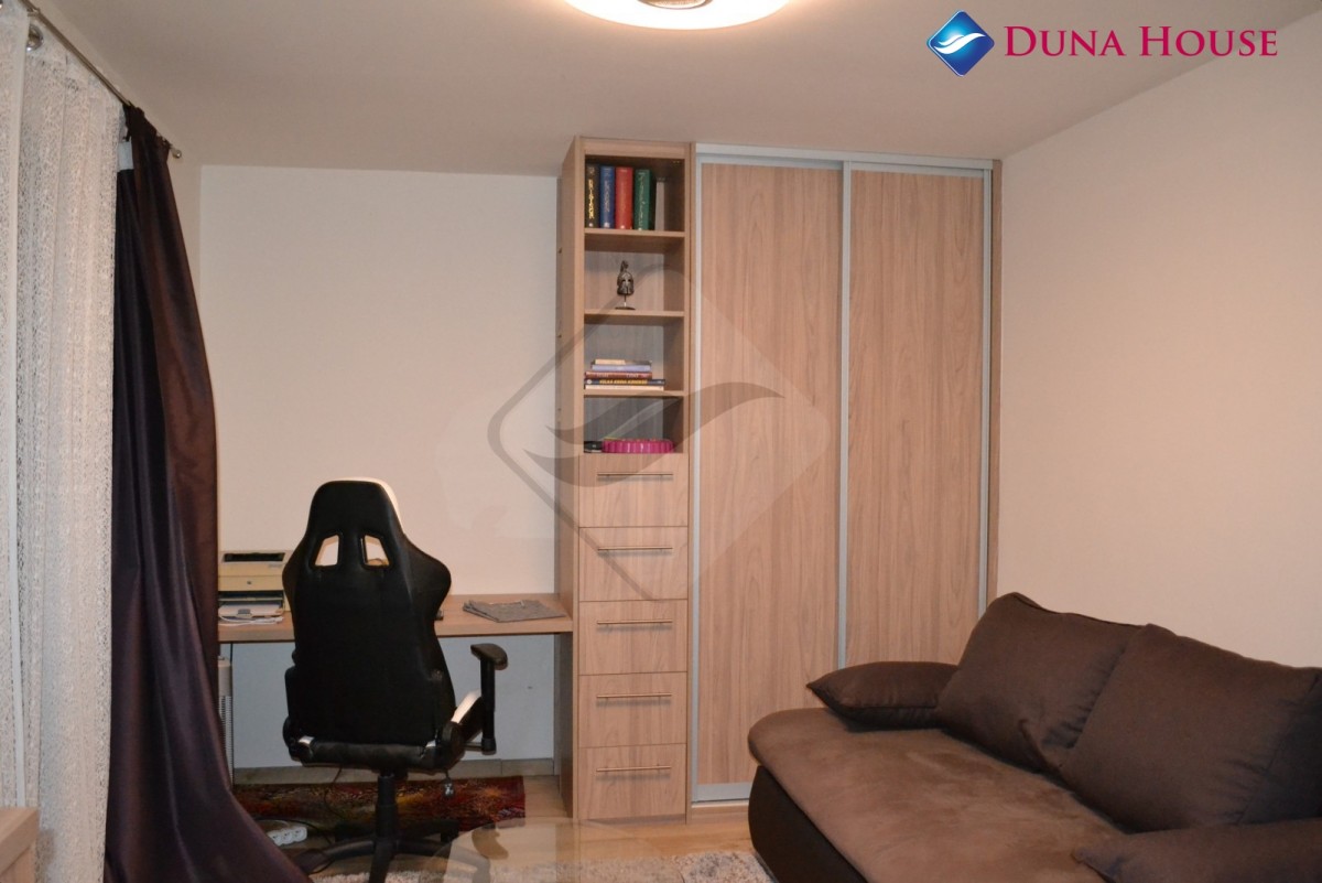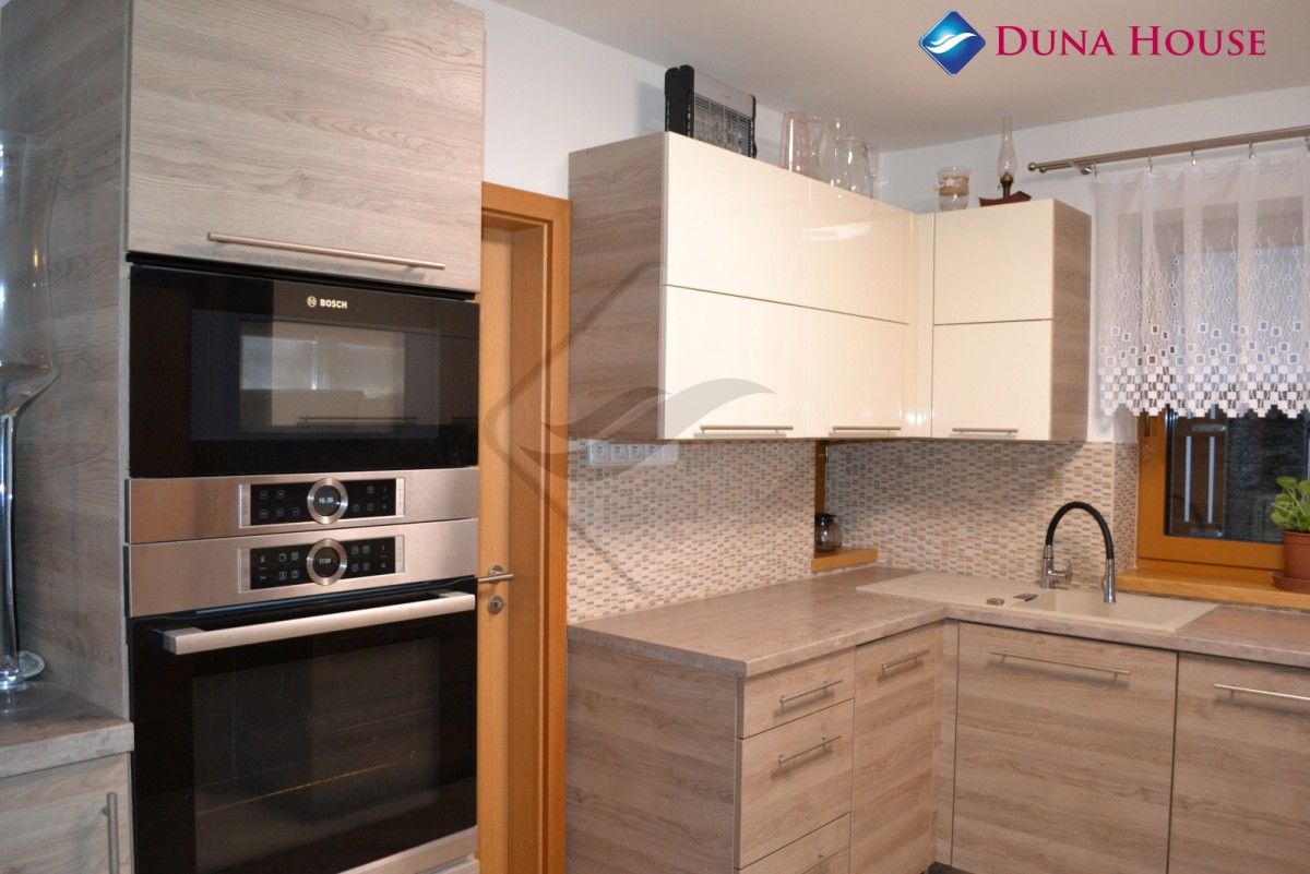Po levé straně z obývacího pokoje vstupujeme na další chodbu, kde se nachází pokoj, koupelna se sprchovým koutem, sociální zařízení WC a s vestavěnou skříní. V zadní části domu je technická místnost. Součástí obývacího pokoje je plně vybavena kuchyňská linka se spotřebiči Bosch a část kuchyně osvětluje světlovod.