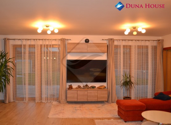 V přízemí se dostáváme do velkého obývacího pokoje, který je středem a zajišťuje vstup z obou stran do dalších místností. Po pravé straně vstupujeme na chodbu, pokoje, ložnice a koupelny, která disponuje vanou, sprchovým koutem a sociální zařízení WC.