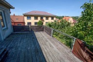 Kolem domu je zahrada se vzrostlými stromy a ve vnitrobloku se nachází prostorný dvůr, který poskytuje absolutní soukromí, s dalším letním pokojem, malým sklípkem, udírnou a zděným zastřešeným posezením.