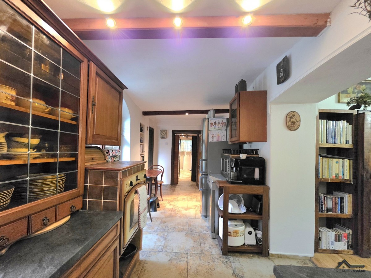Kombinovaný kotel (plyn/dřevo), solární panely pro ohřev vody, dálkový vodovod + možnost studny, kanalizace, elektřina 230/400 V.