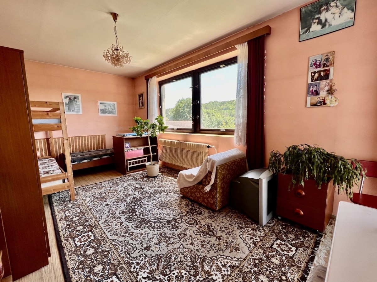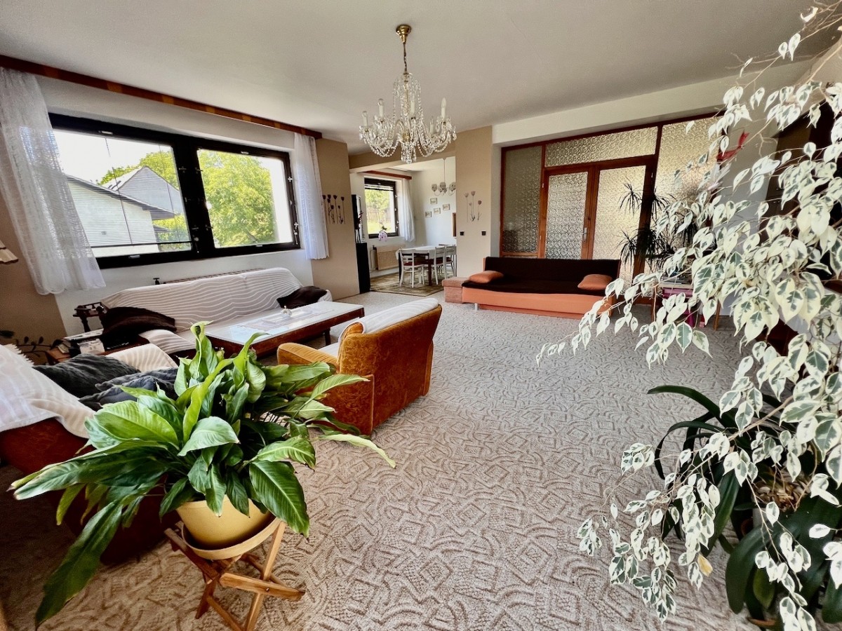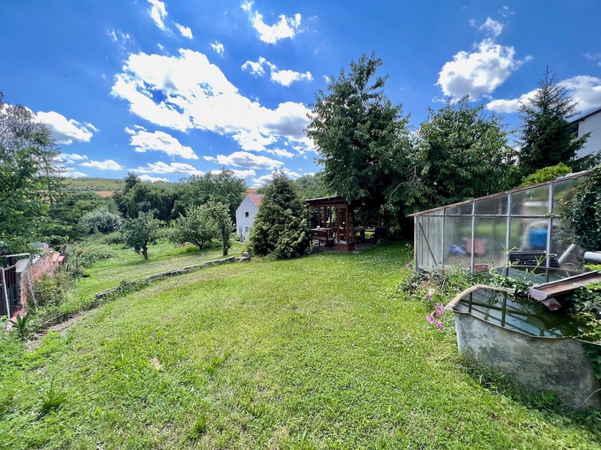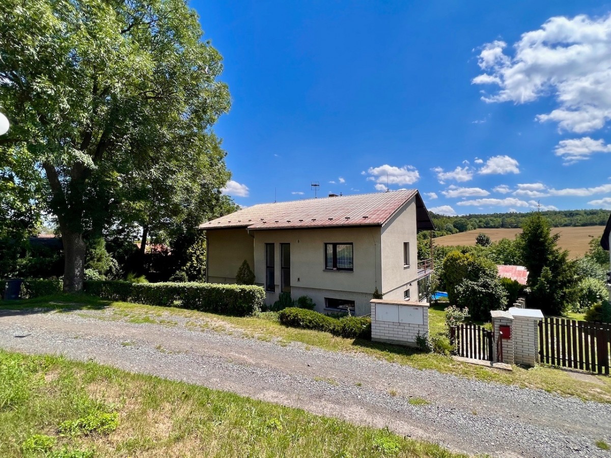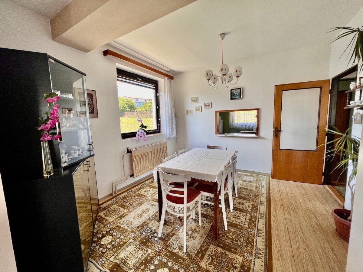 V prvním patře domu je skvěle dispozičně řešený byt 5+1 s velkorysým obývacím pokojem s balkonem. V příz...emí domu je zázemí, v kterém je možné vybudovat menší bytovou jednotku. Celý dům má ústřední topení, které lze vytápět automatickým kotlem na uhlí, nebo plynovým kotlem. Voda z vlastní studny, nebo z obecního vodovodu. Lehce svažitý jižní pozemek o velikosti 1625 m2. Na pozemku najdeme příjemnou terasu s bazénem, pergolu i zděnou kolnu. Dům je skvěle udržován. Pokud hledáte rodinný dům s velkým pozemkem, doporučuji prohlídku.