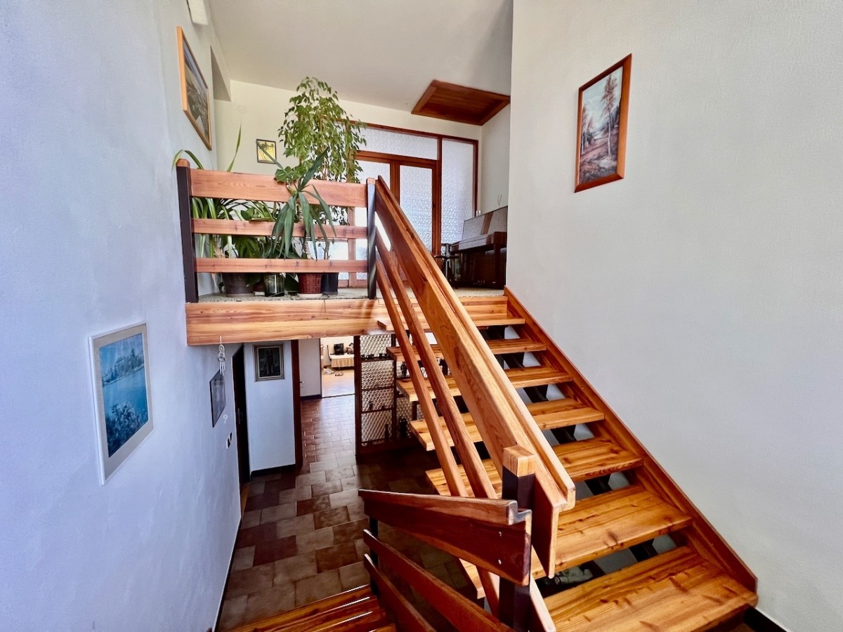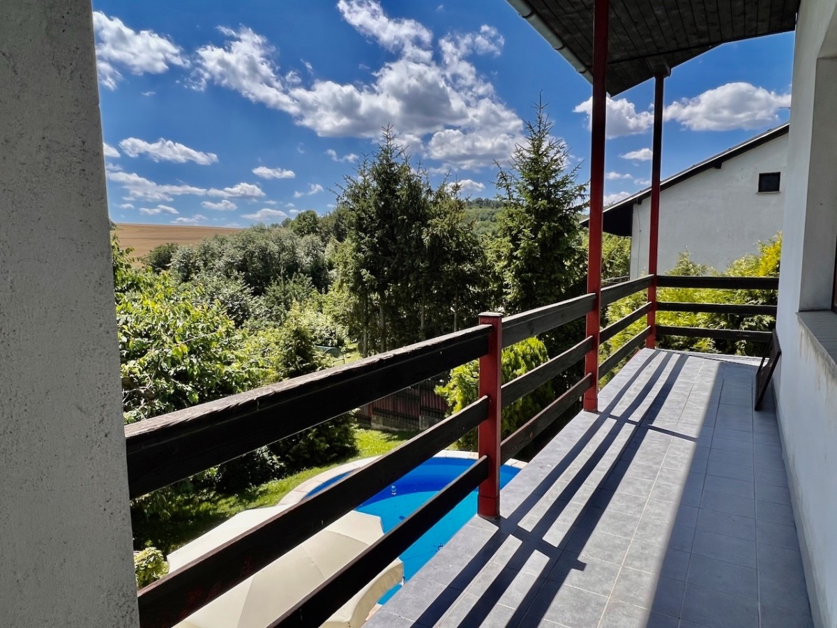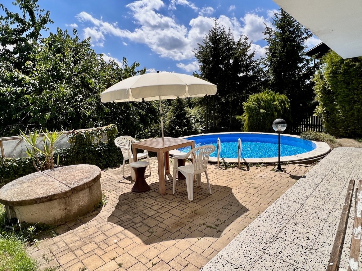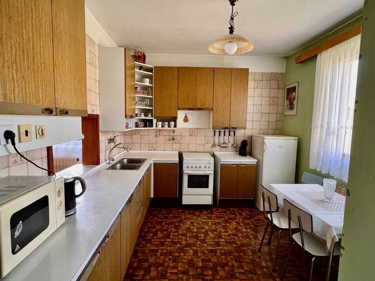 V prvním patře domu je skvěle dispozičně řešený byt 5+1 s velkorysým obývacím pokojem s balkonem. V příz...emí domu je zázemí, v kterém je možné vybudovat menší bytovou jednotku. Celý dům má ústřední topení, které lze vytápět automatickým kotlem na uhlí, nebo plynovým kotlem. Voda z vlastní studny, nebo z obecního vodovodu. Lehce svažitý jižní pozemek o velikosti 1625 m2. Na pozemku najdeme příjemnou terasu s bazénem, pergolu i zděnou kolnu. Dům je skvěle udržován. Pokud hledáte rodinný dům s velkým pozemkem, doporučuji prohlídku.